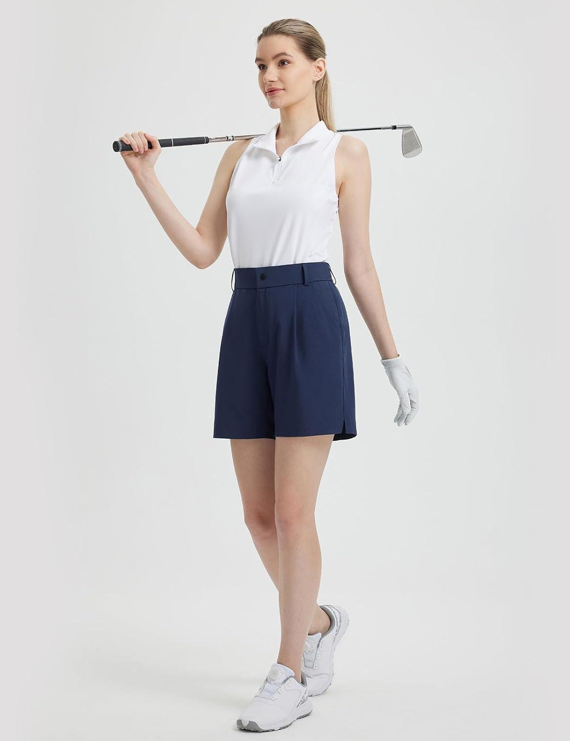 imagebaleaf Womens 6 Golf Shorts Stretch Pleated Work Short for Hiking Quick Dry Dressy Casual Summer UPF50Black