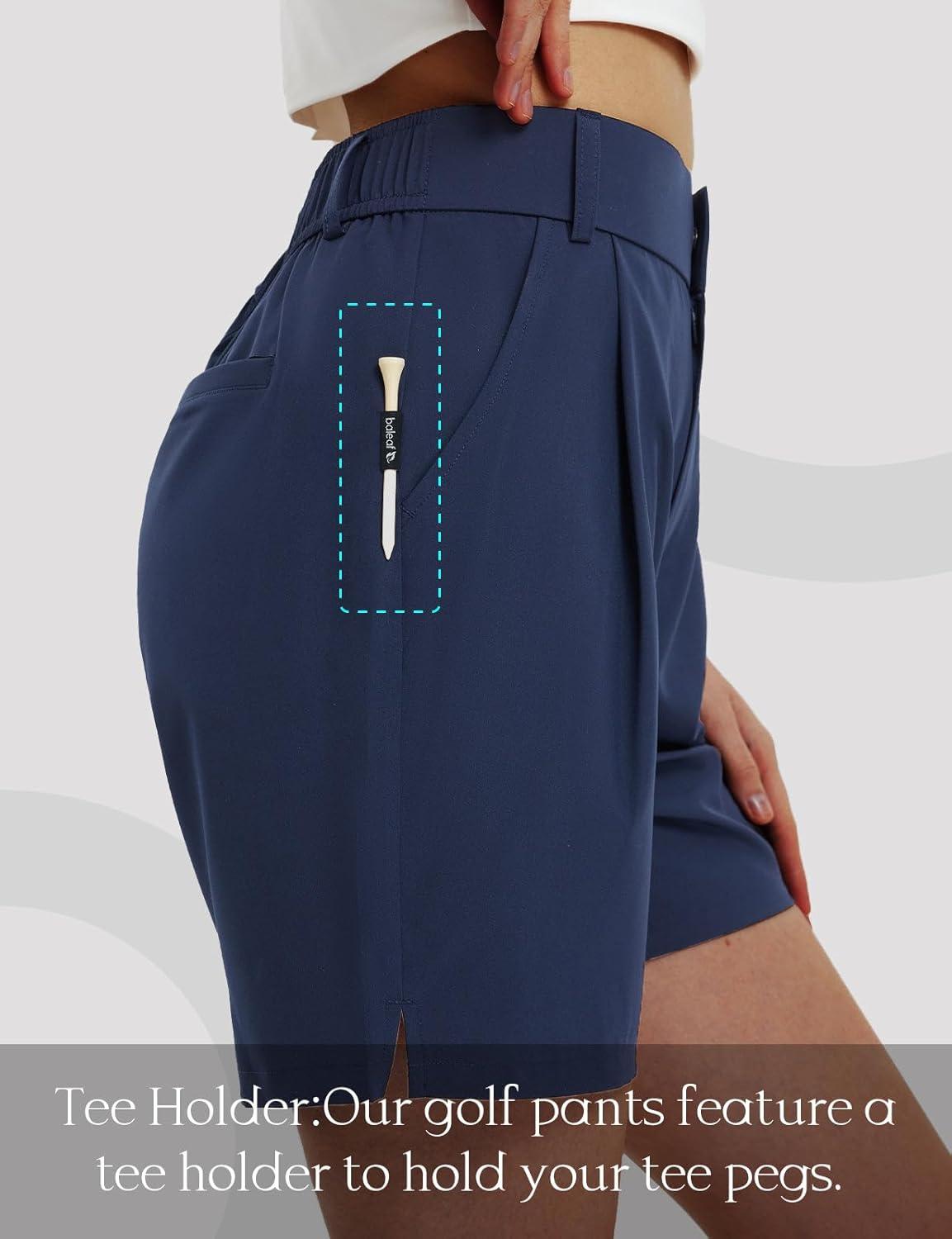 baleaf Women’s Golf Shorts Stretch Pleated Work Short for Hiking Quick Dry Dressy Casual Summer UPF50+ Navy Blue XL