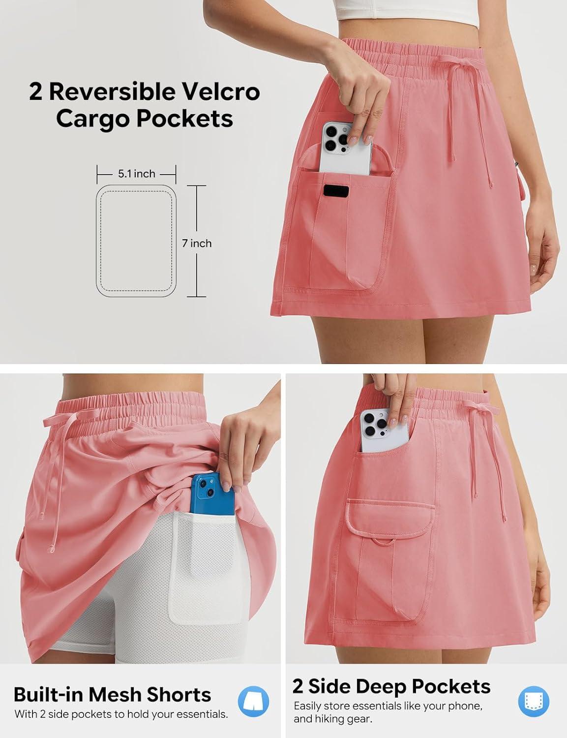 imagebaleaf Womens Hiking Cargo Skort High Waisted Golf Travel Athletic Skirts with Pocket Water Resistant Sport SkortsLight Pink