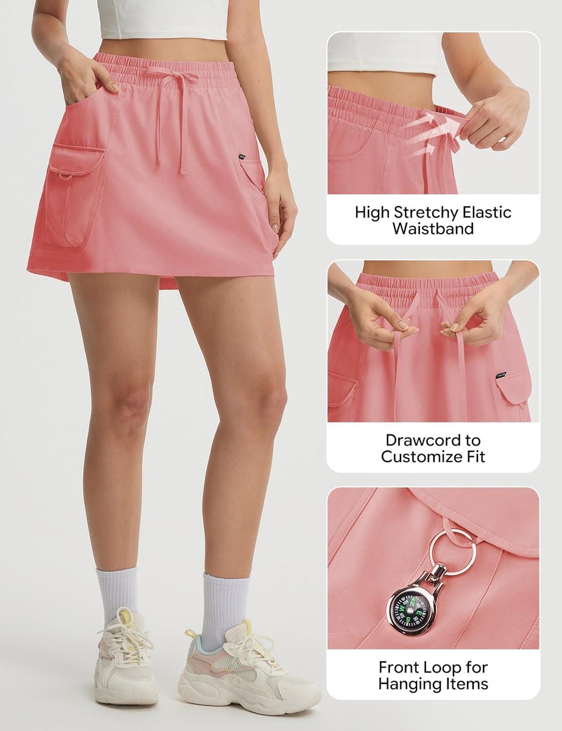 baleaf Women’s Hiking Cargo Skort High Waisted Golf Travel Athletic Skirts with Pocket Water Resistant Sport Skorts(Light Pink)
