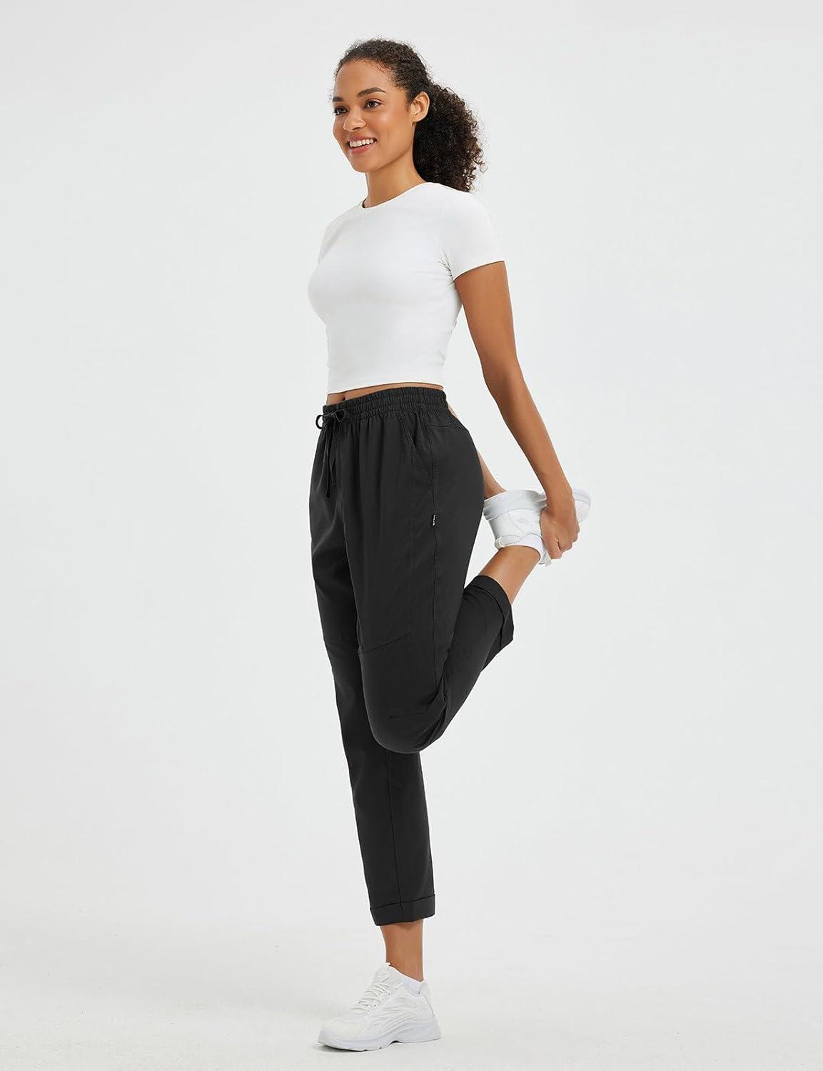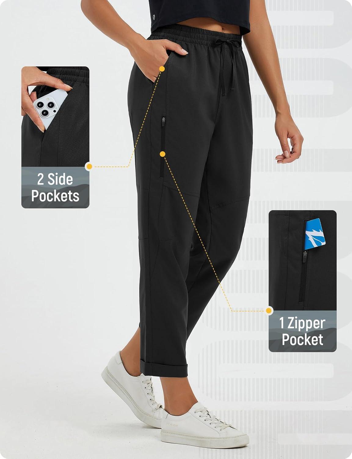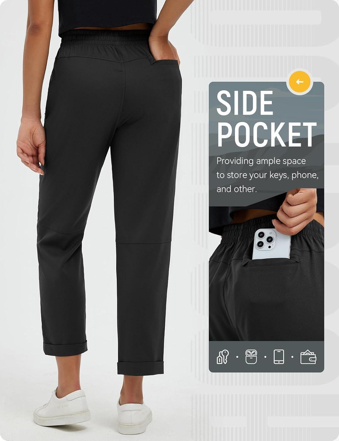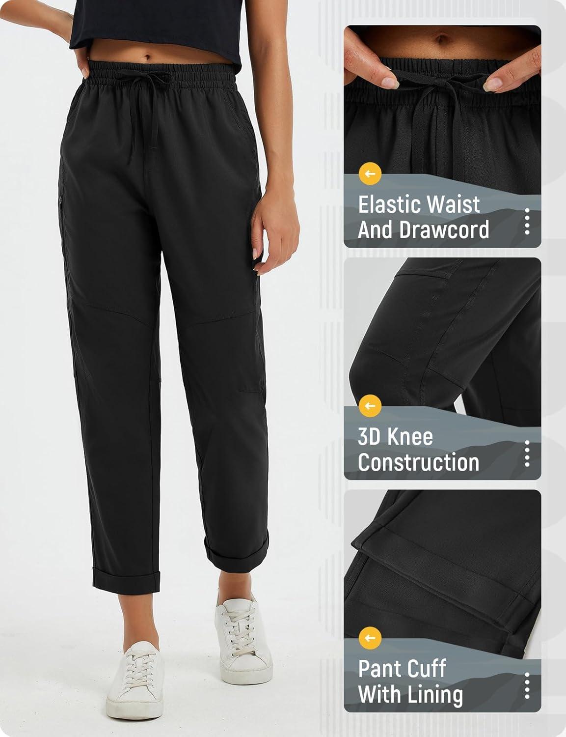 imagebaleaf Womens Hiking Pants Ripstop Water Resistant Lightweight Golf Pants Quick Dry Zip Pockets Work Travel ClothesBlack