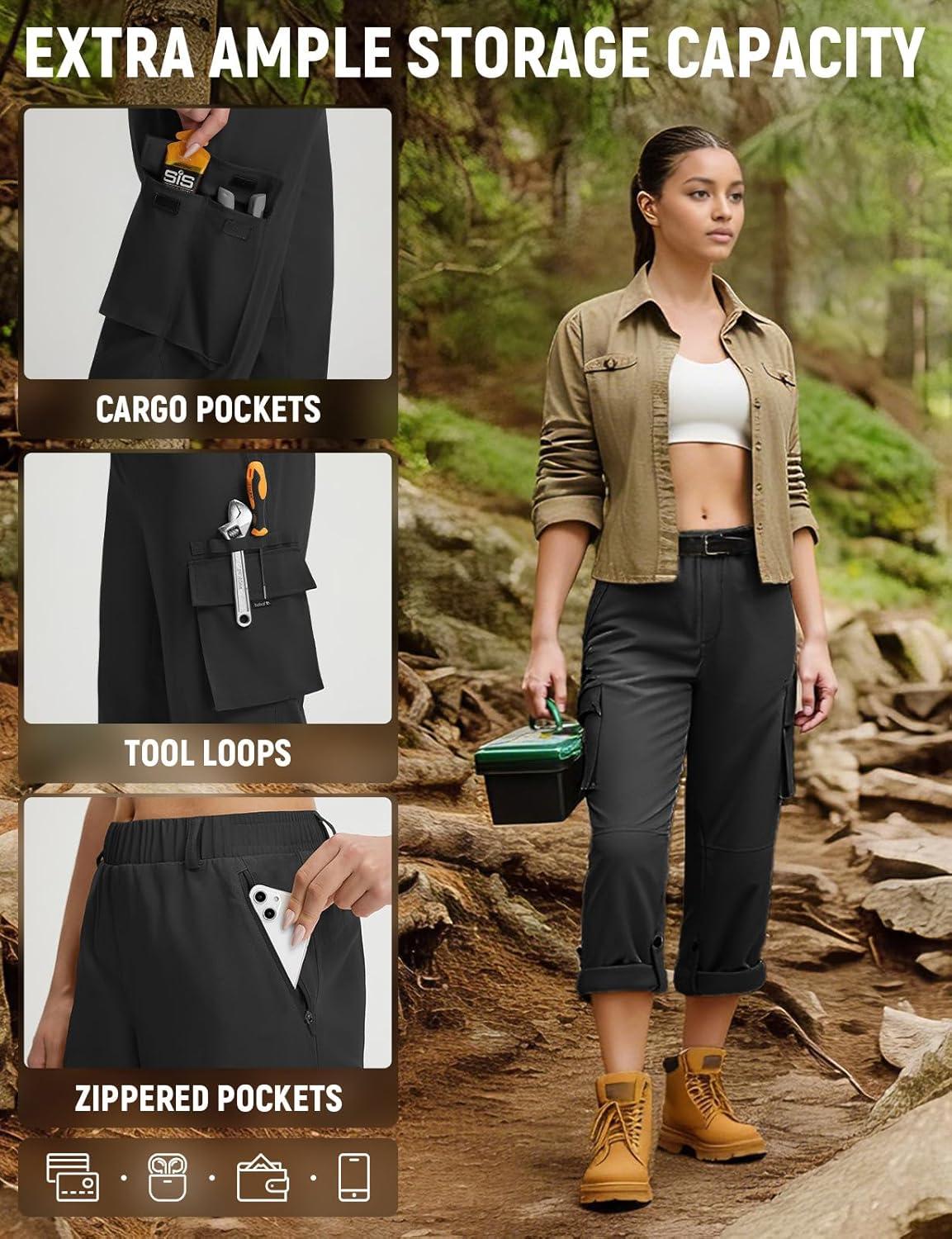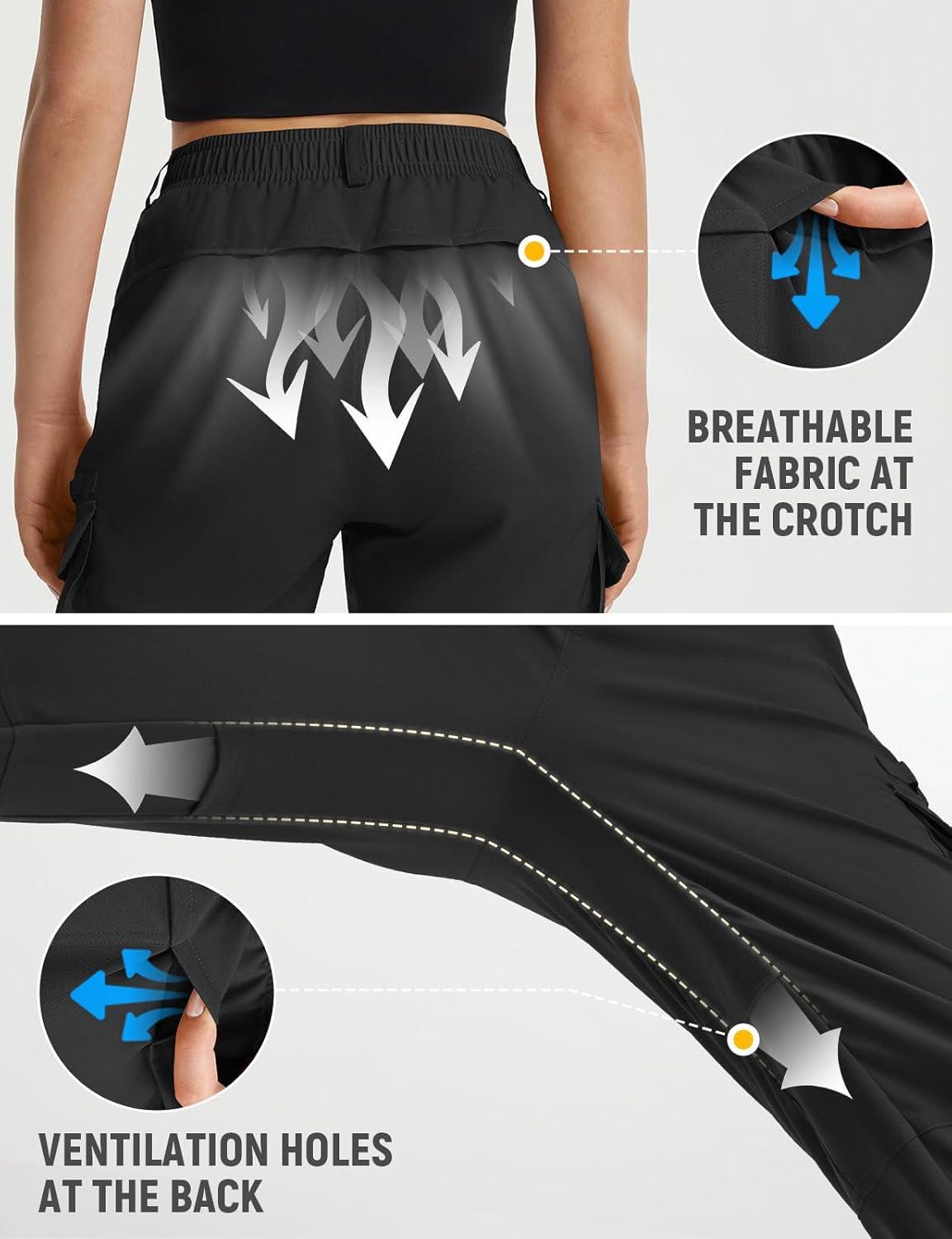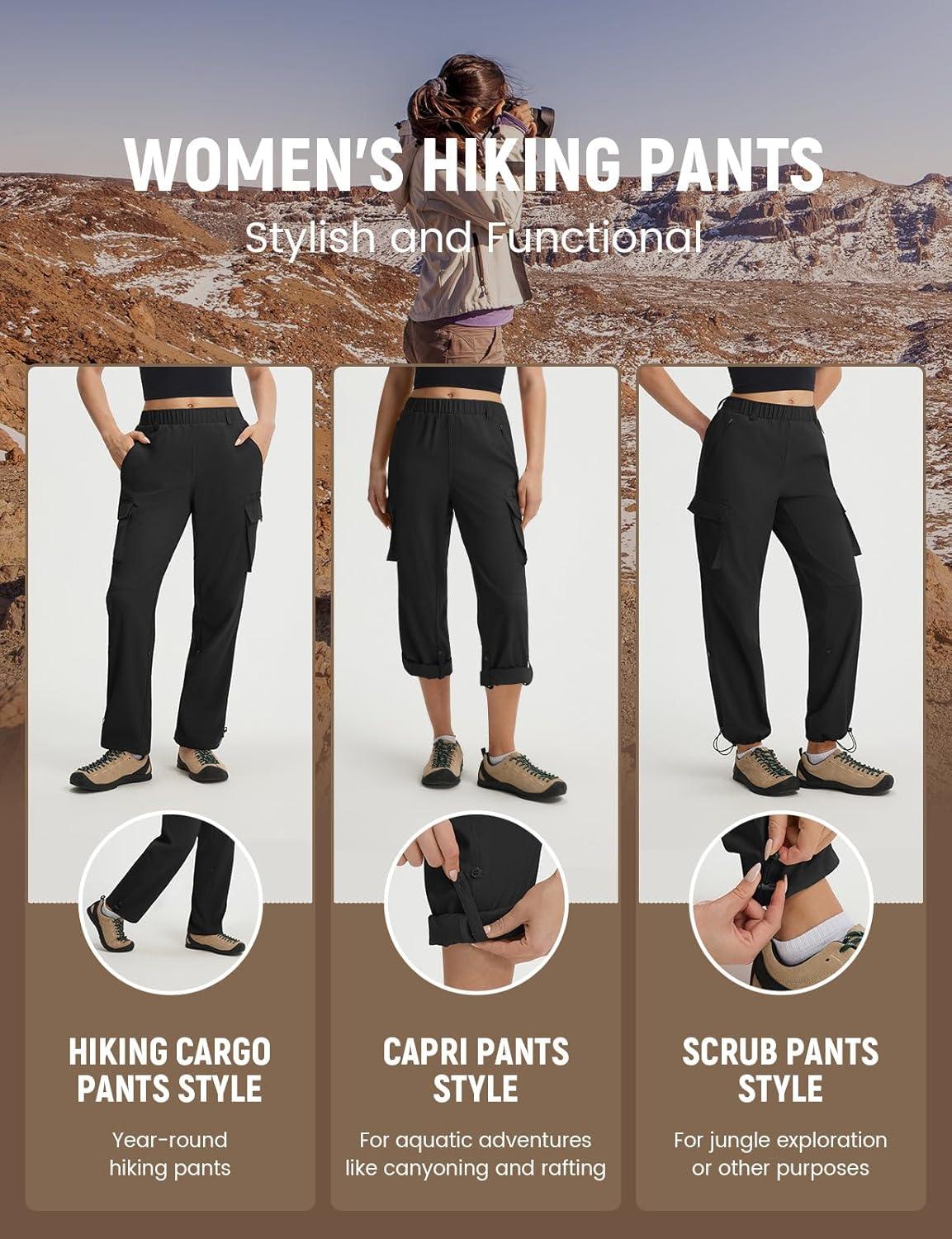 imagebaleaf Womens Hiking Pants Water Resistant Quick Dry SPF Tactical Cargo with 5 Pockets Lightweight Breathable Ripstop UPF 50Black