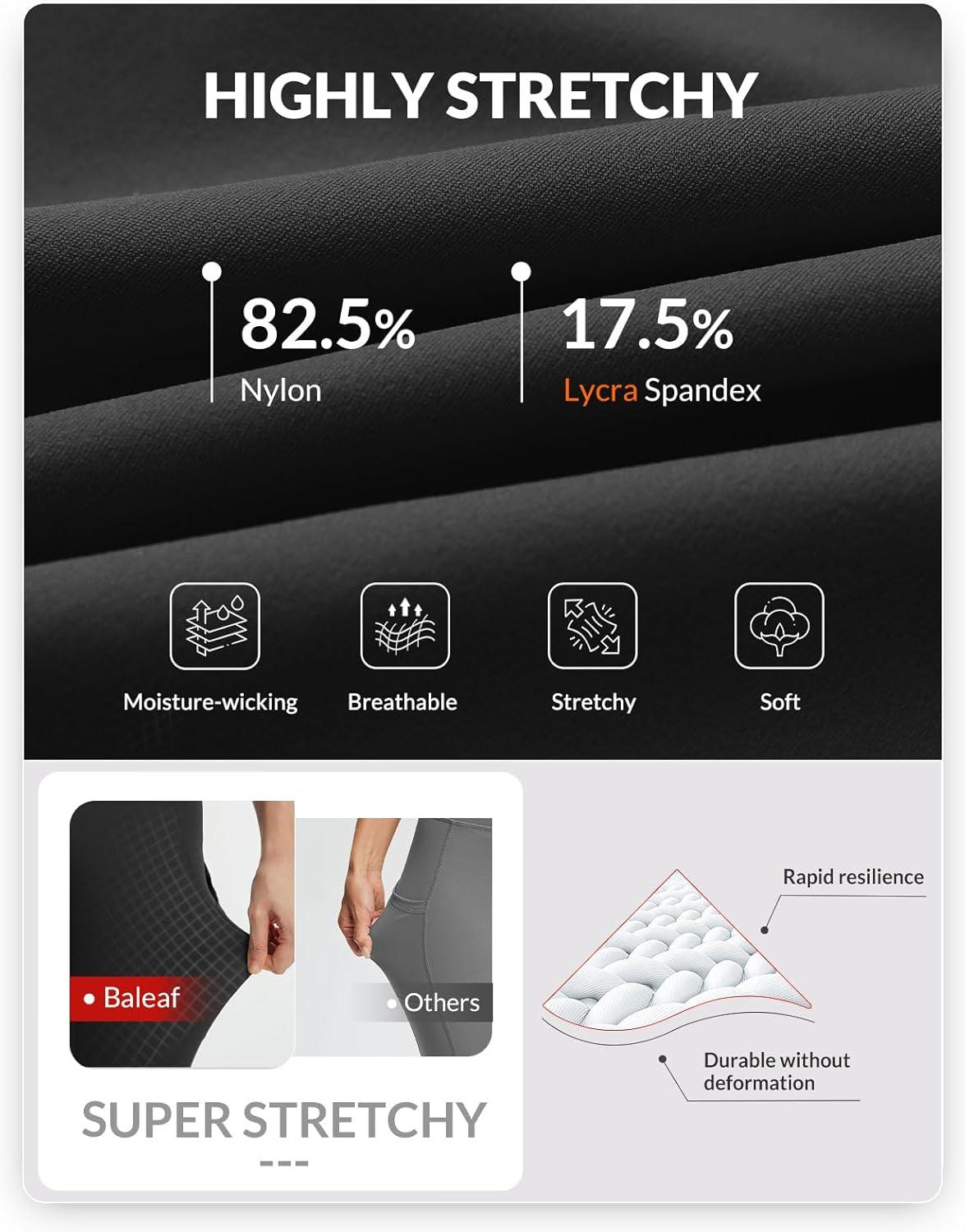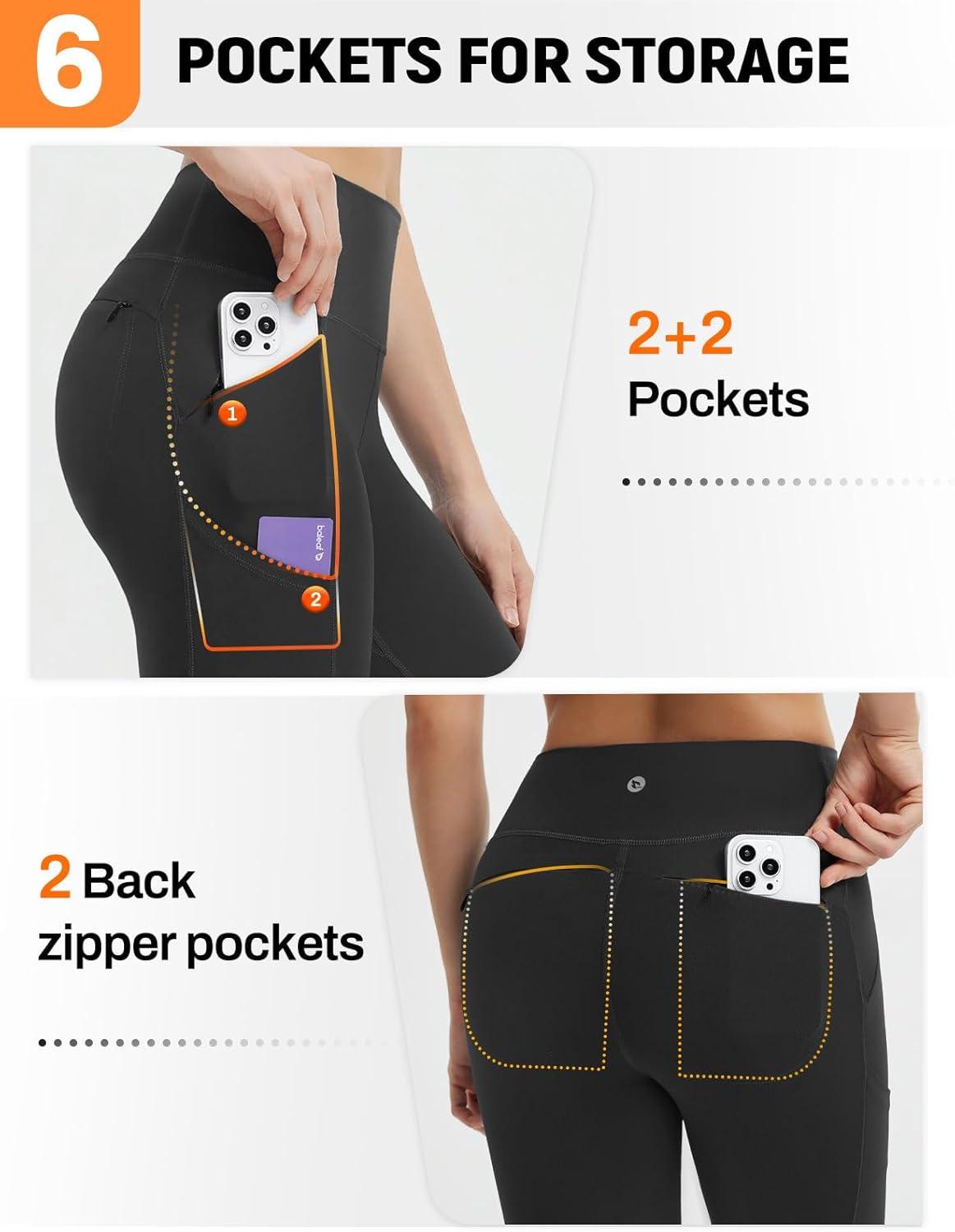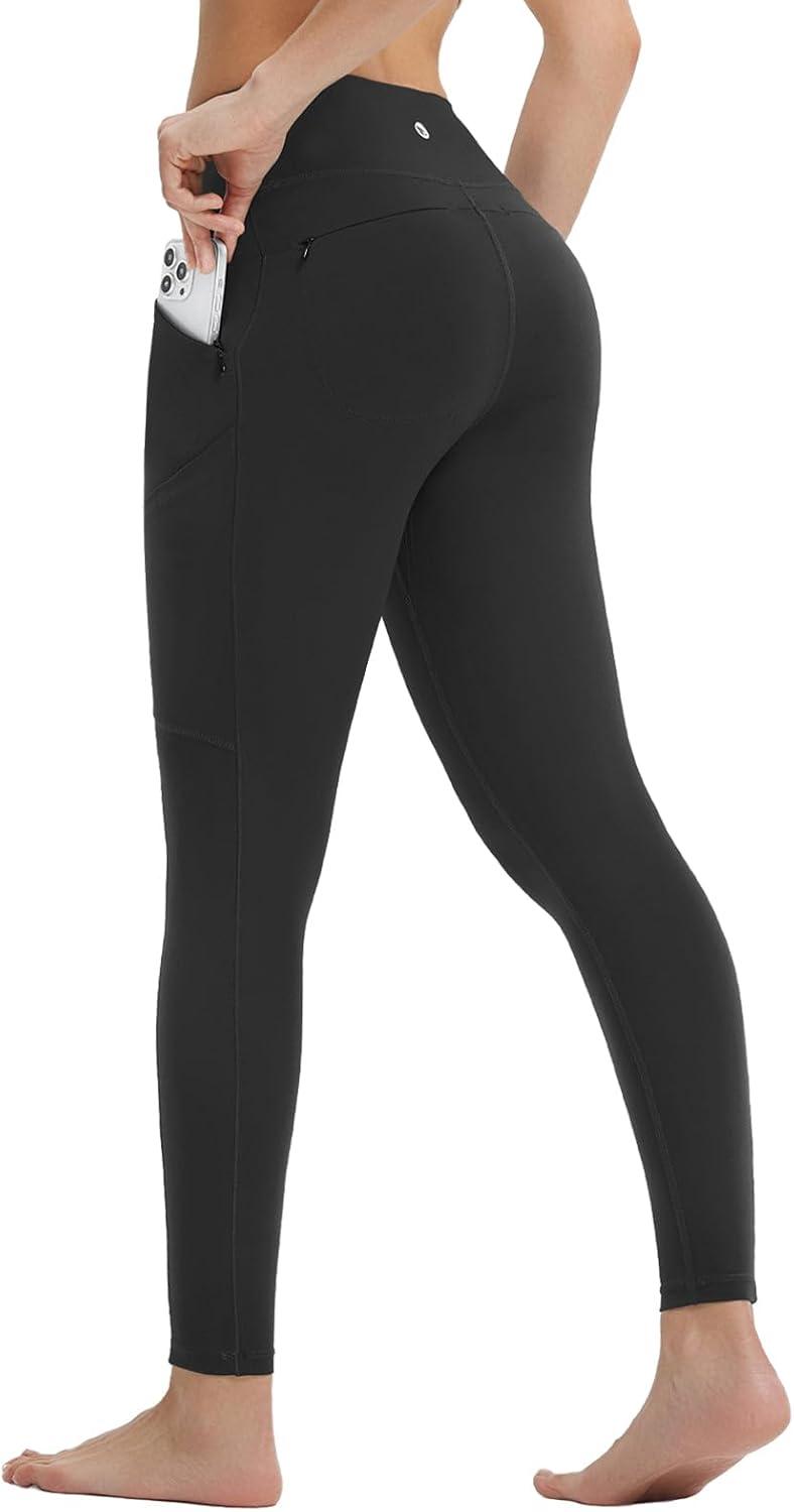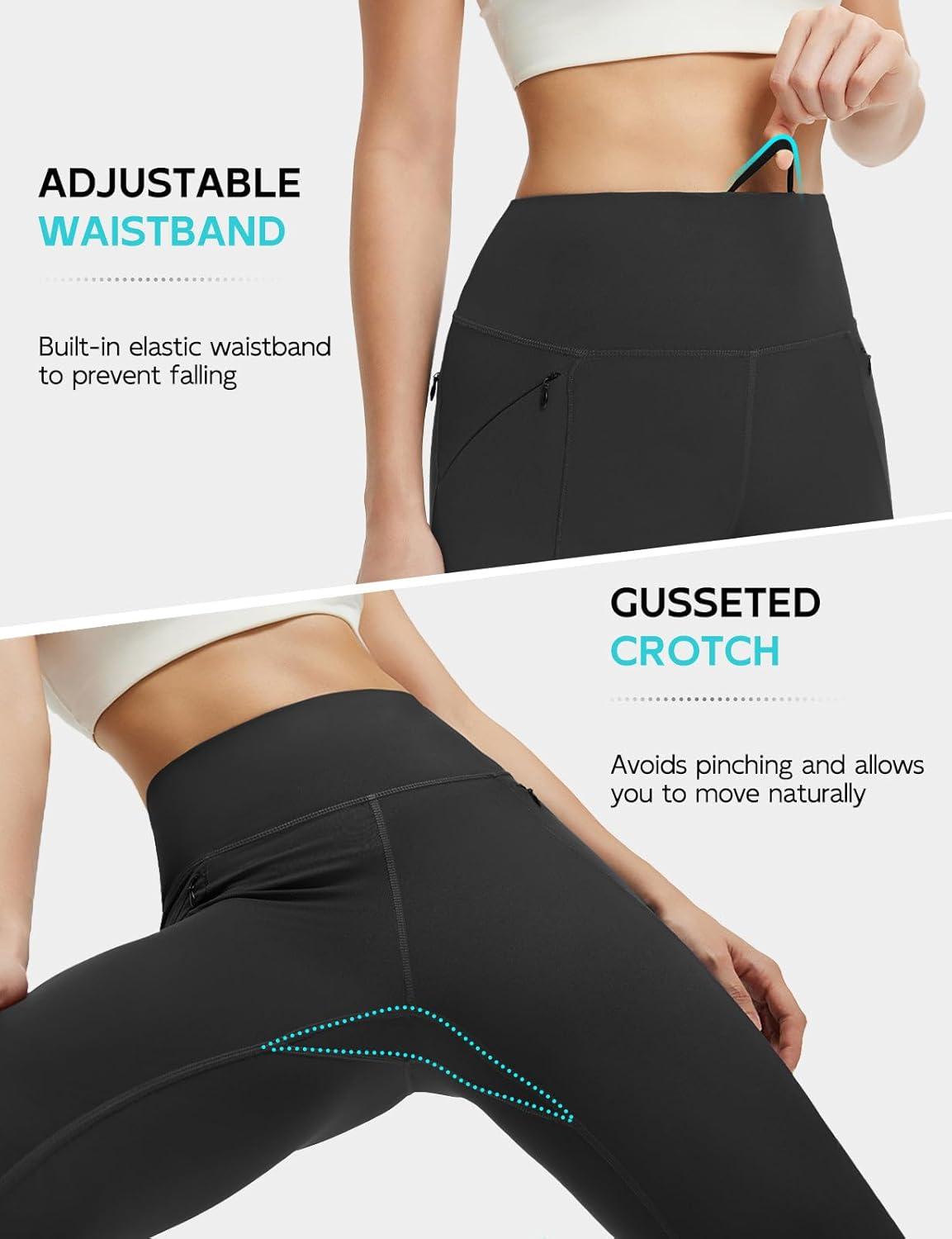 baleaf Women’s Leggings with 6 Pockets 25” High Waisted Workout Yoga Tummy Control 7/8 Ankle Pants(Black)