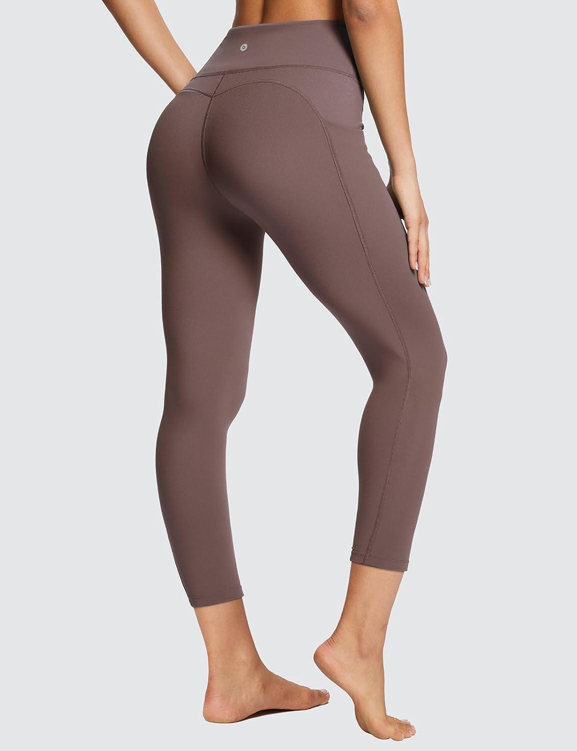 baleaf Women’s Leggings with Pockets Black Tummy Control Workout High Waisted Athletic 7/8 Ultra Soft Gym Yoga Ankle Pants(Light Brown)