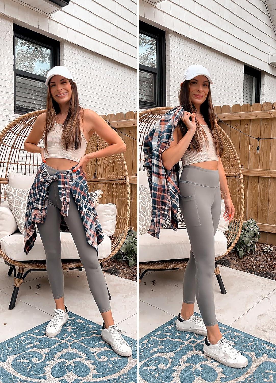 imagebaleaf Womens Leggings with Pockets Black Tummy Control Workout High Waisted Athletic 78 Ultra Soft Gym Yoga Ankle PantsGray
