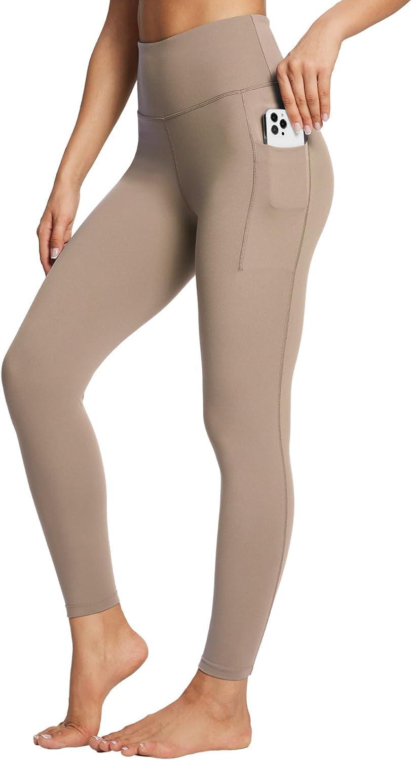 baleaf Women’s Leggings with Pockets Black Tummy Control Workout High Waisted Athletic 7/8 Ultra Soft Gym Yoga Ankle Pants(Light Brown)