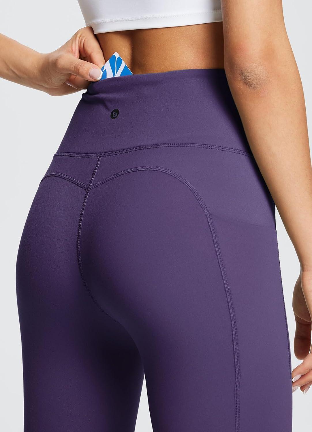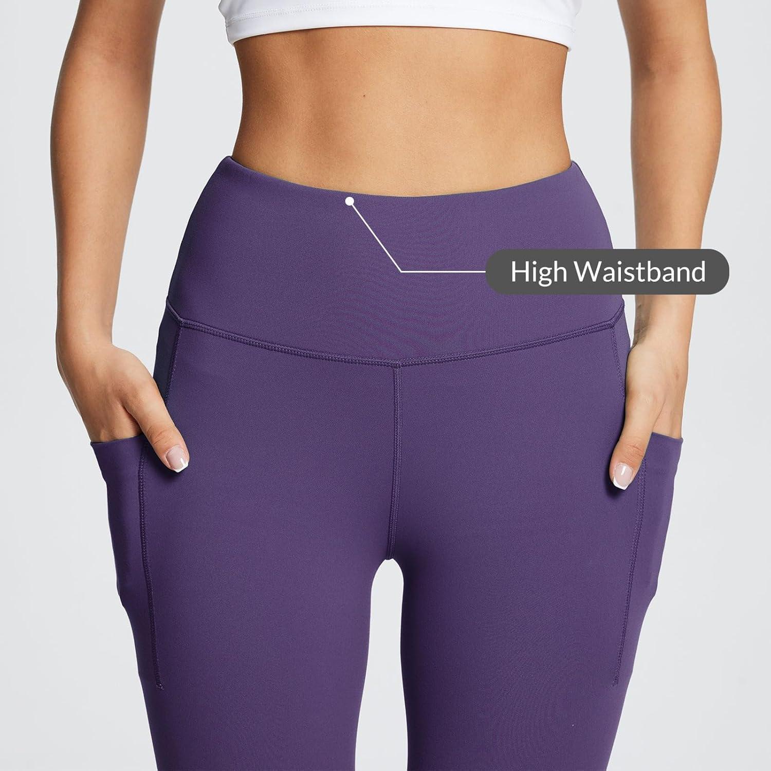imagebaleaf Womens Leggings with Pockets Black Tummy Control Workout High Waisted Athletic 78 Ultra Soft Gym Yoga Ankle PantsShadow Purple