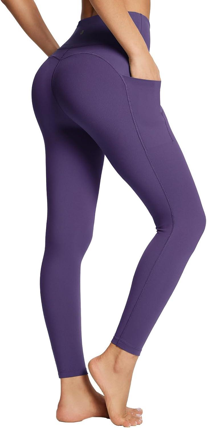 baleaf Women’s Leggings with Pockets Black Tummy Control Workout High Waisted Athletic 7/8 Ultra Soft Gym Yoga Ankle Pants(Shadow Purple)