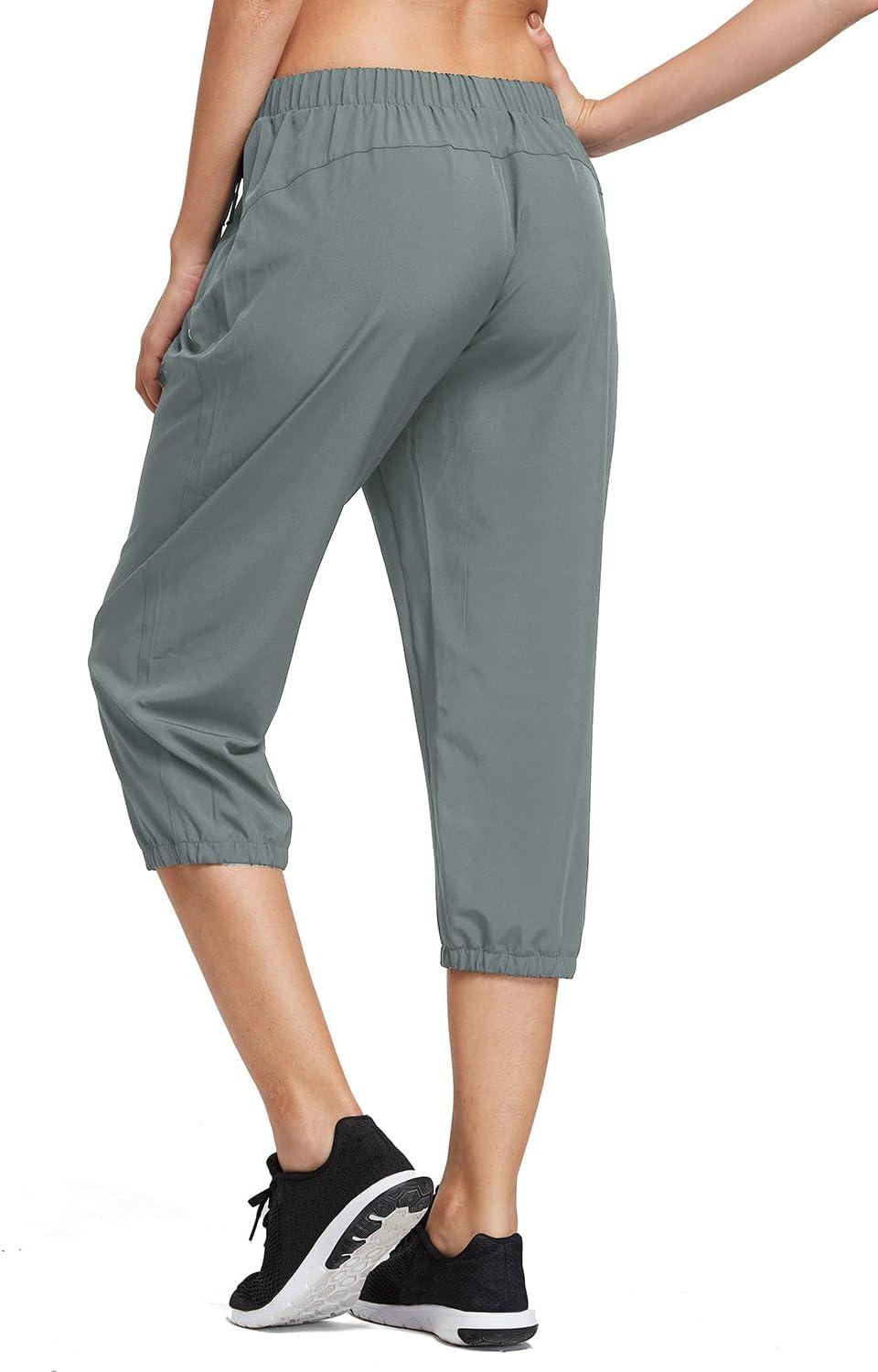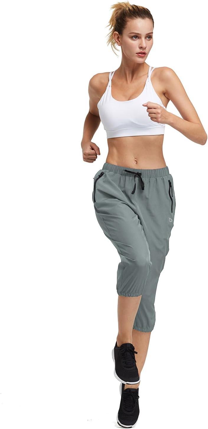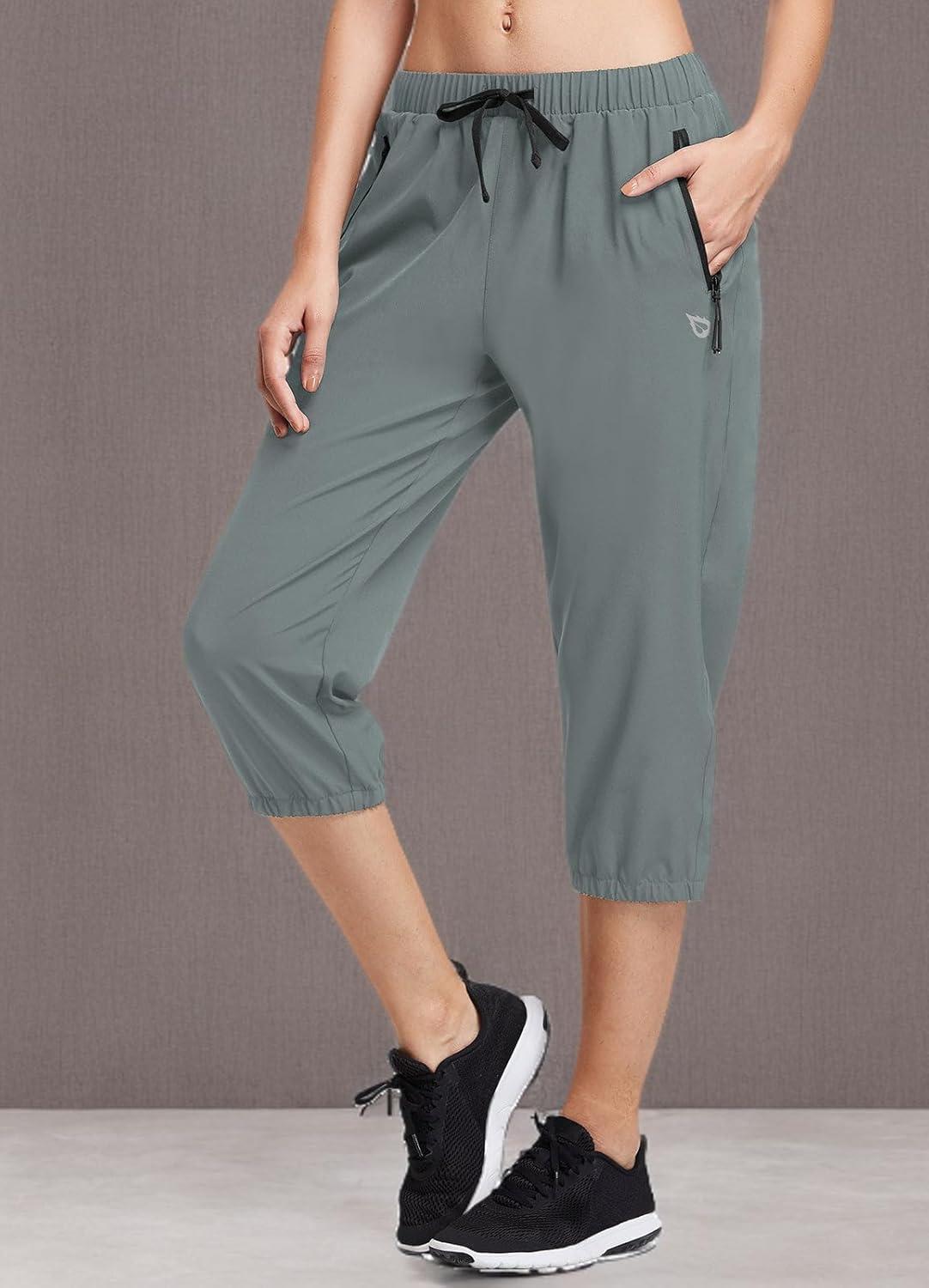 imagebaleaf Womens Lightweight Capri Jogger Hiking Shorts Running Capri Pants Quick Dry UPF 50 Zipper PocketsLight Grey