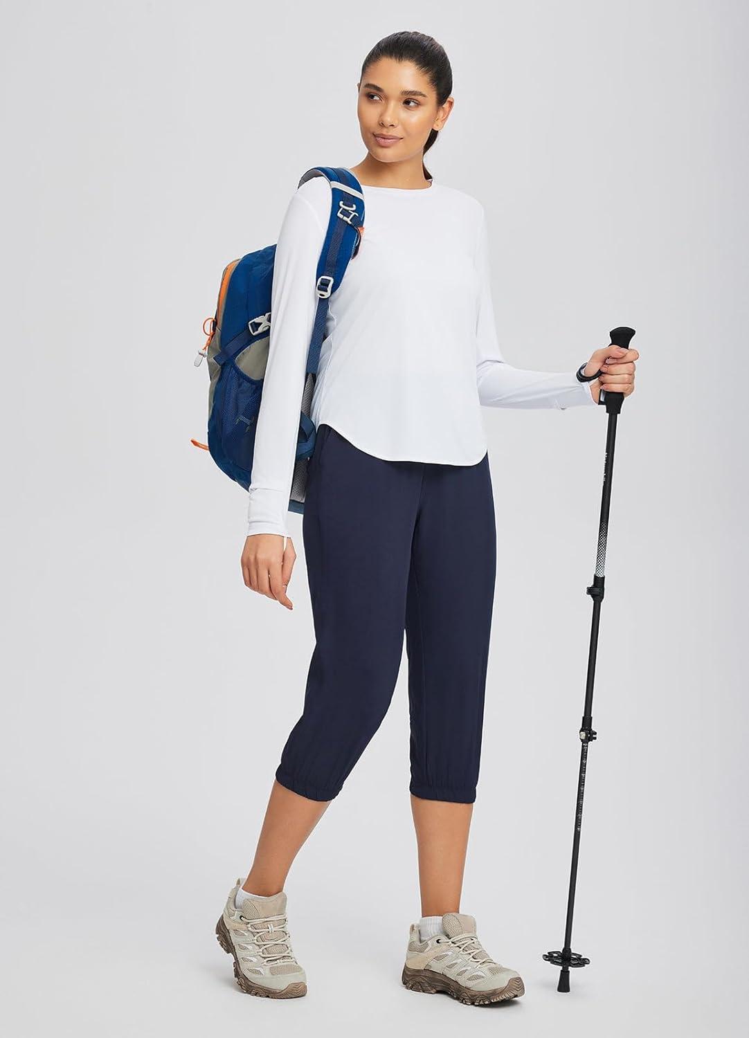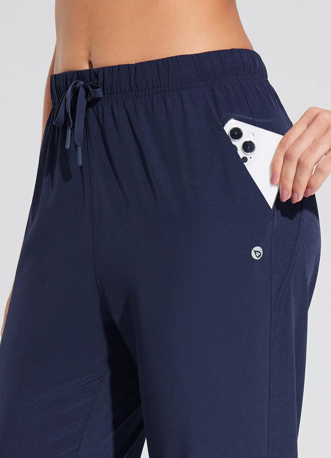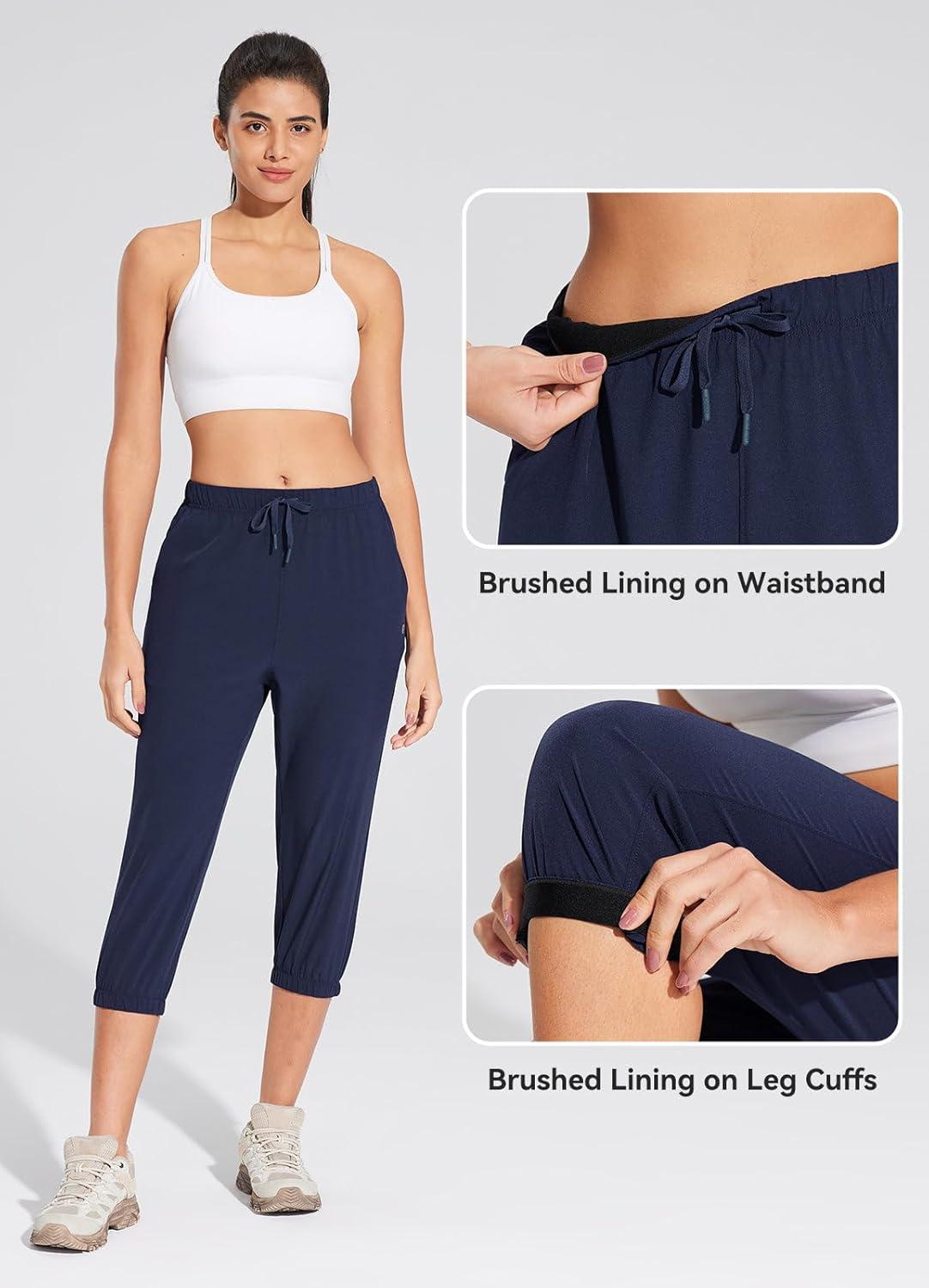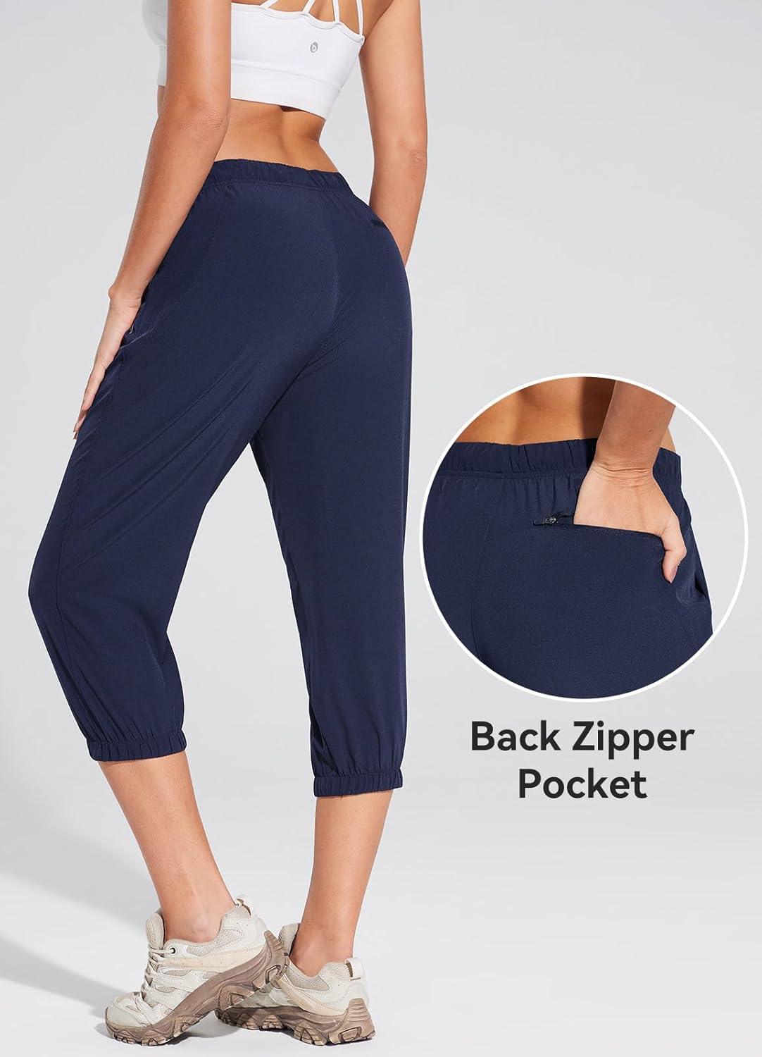 imagebaleaf Womens Lightweight Capri Jogger Hiking Shorts Running Capri Pants Quick Dry UPF 50 Zipper PocketsNavycomfy Waist
