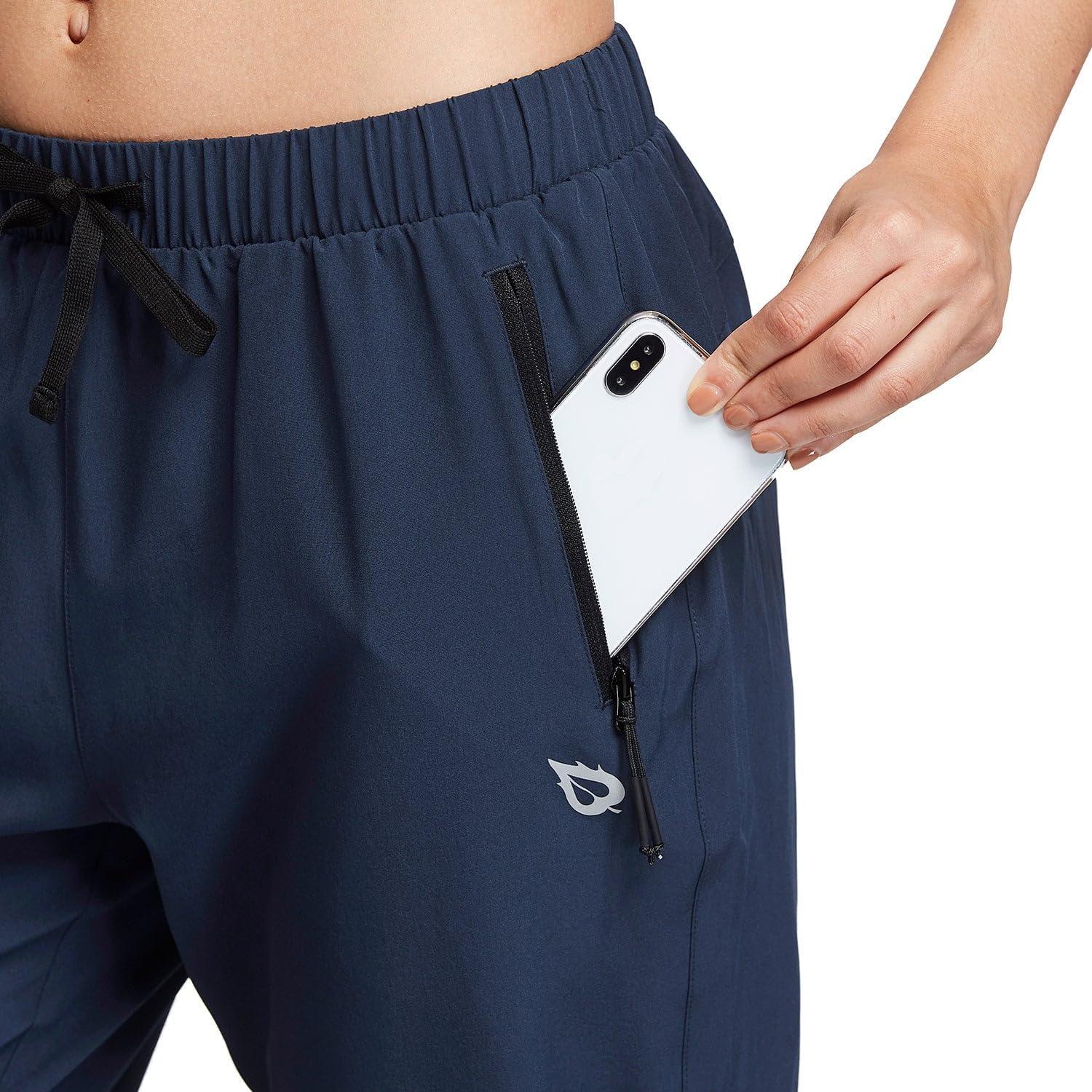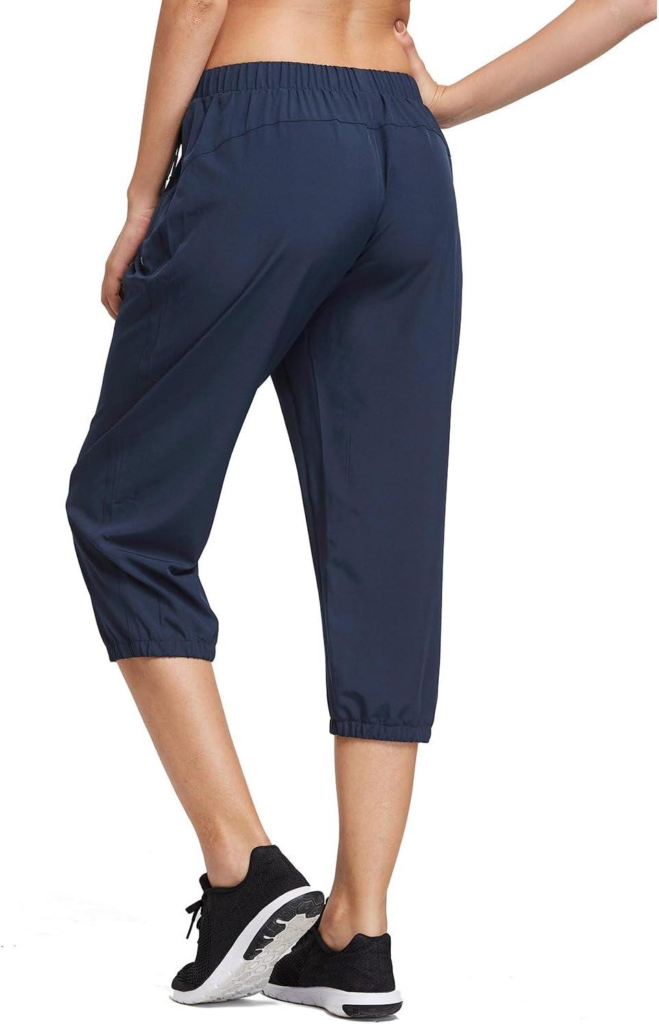 imagebaleaf Womens Lightweight Capri Jogger Hiking Shorts Running Capri Pants Quick Dry UPF 50 Zipper PocketsNavycomfy Waist