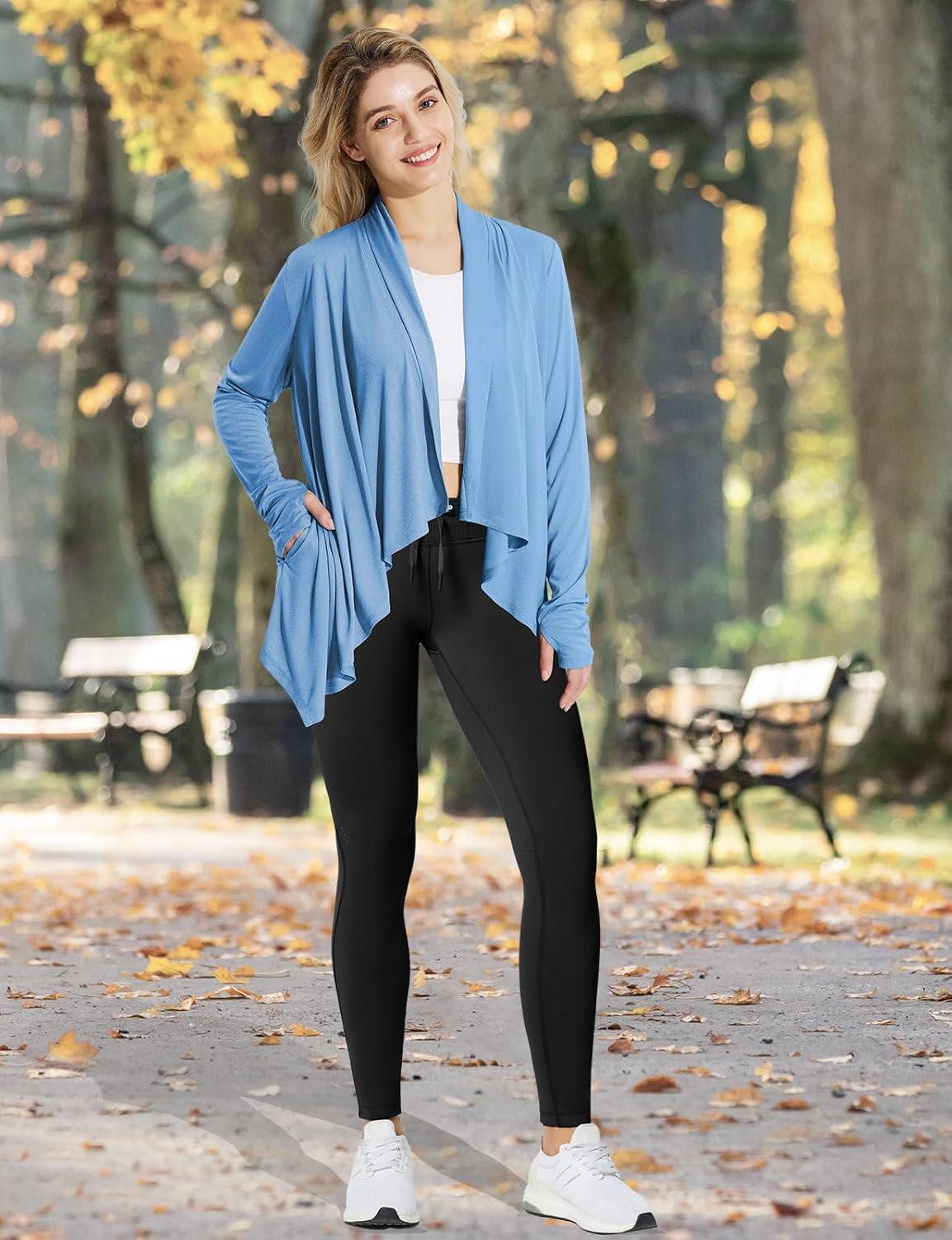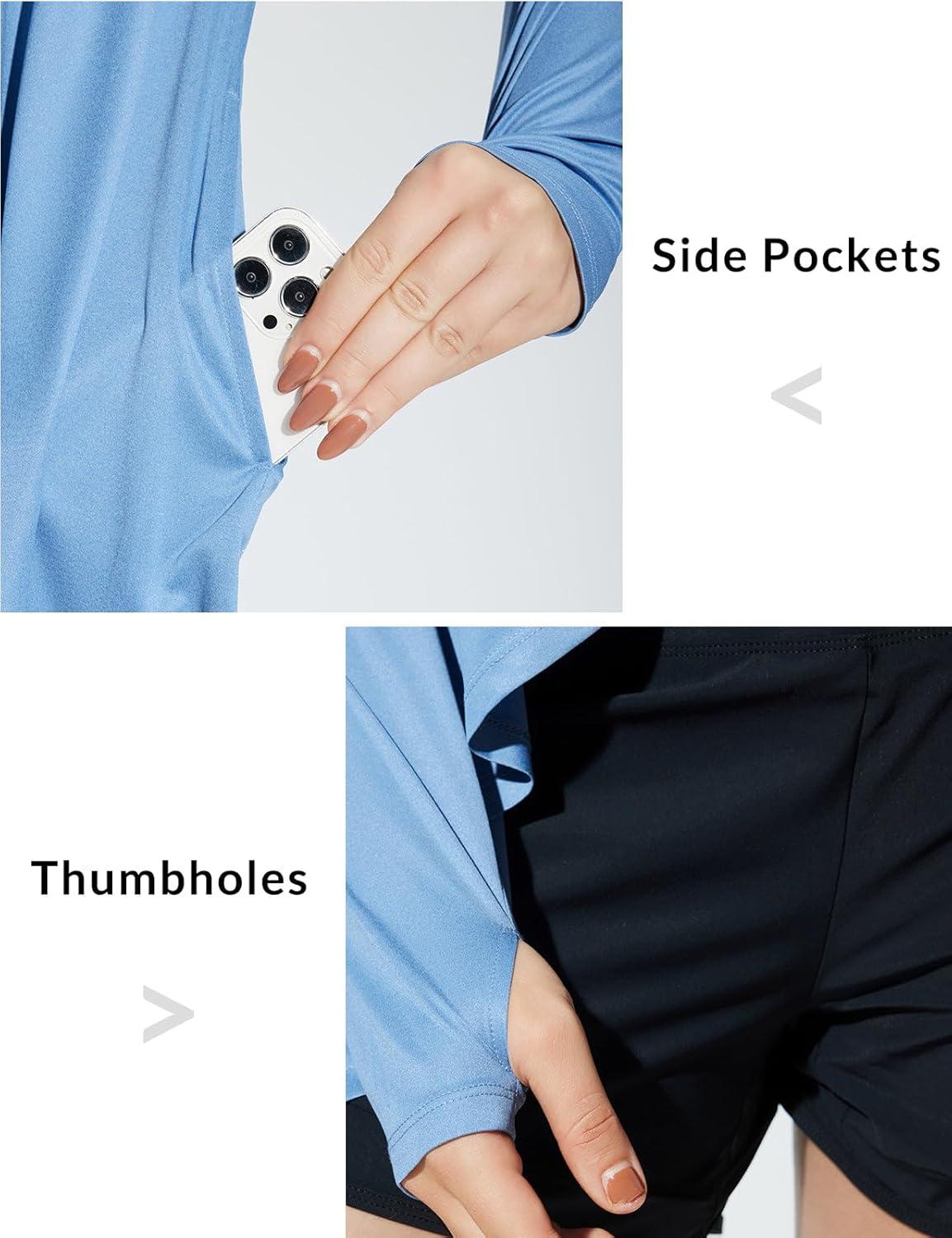 baleaf Women’s Long Sleeve Sun Shirts UPF 50+ Lightweight Open Front Cardigan with Pockets Beach Cover Up SPF Sun Wrap(Textured-blue-long Sleeve)