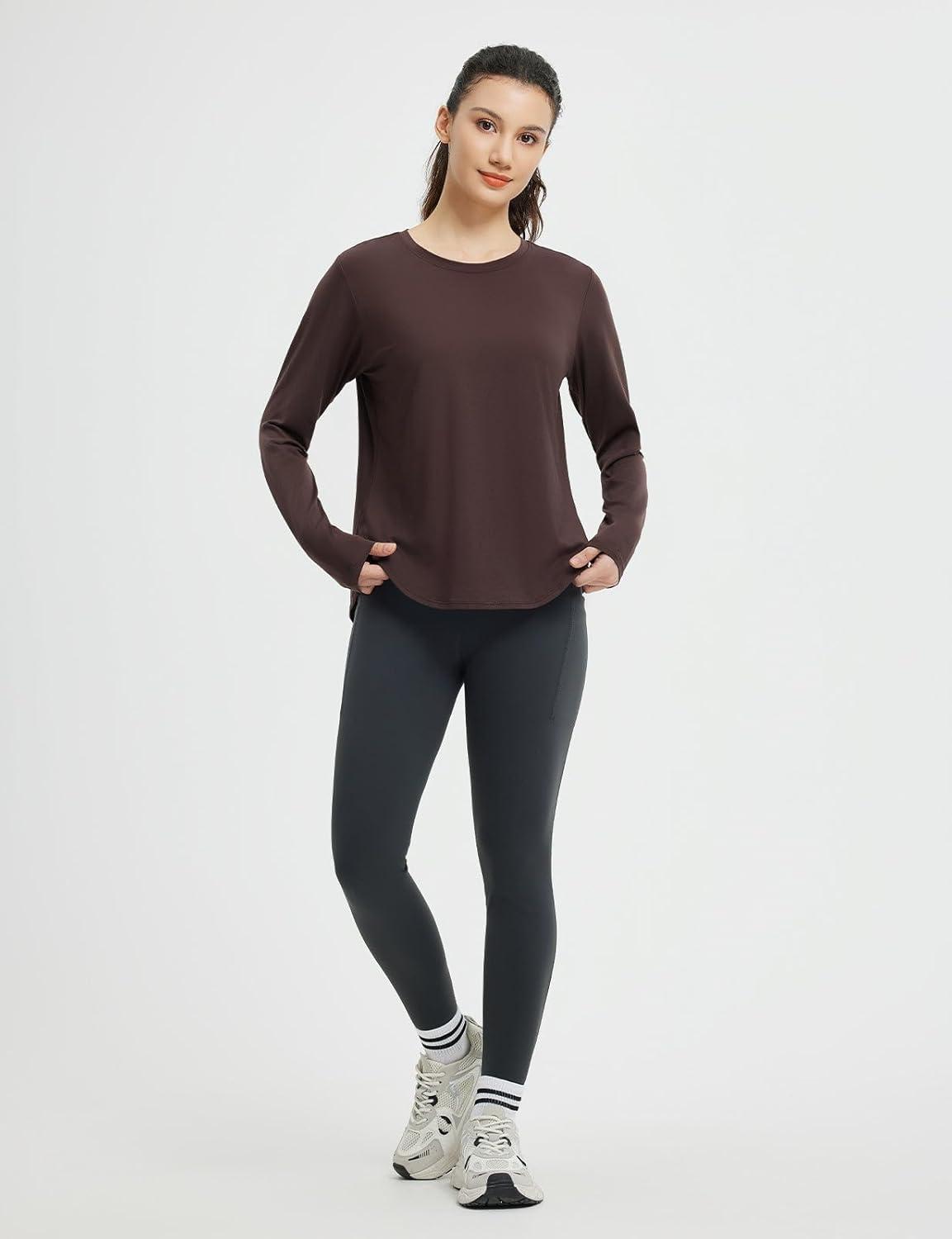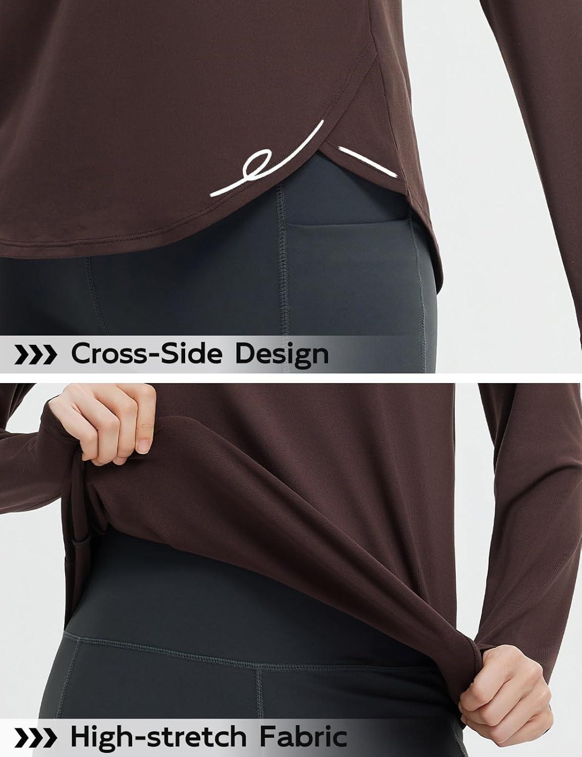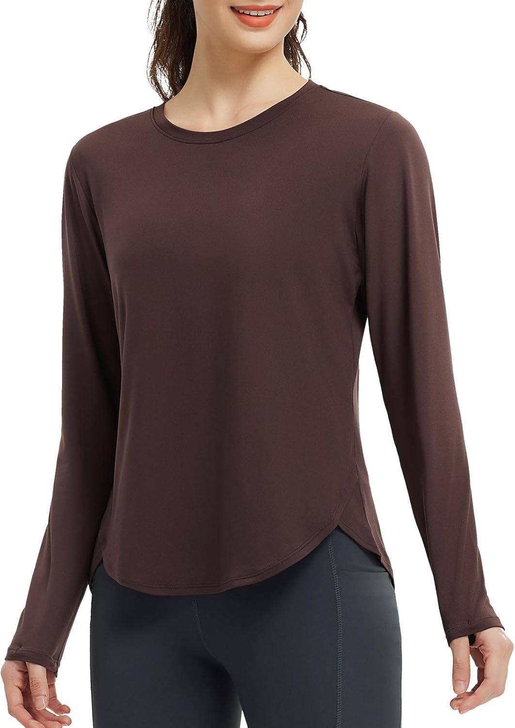 imagebaleaf Womens Long Sleeve Workout Shirts Lightweight Quick Dry Running Athletic Yoga Tops with Curved Hem Thumb LoopDark Brown
