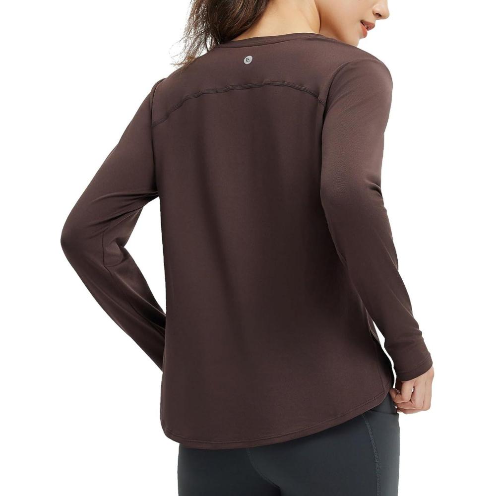 baleaf Women's Long Sleeve Workout Shirts Lightweight Quick Dry Running Athletic Yoga Tops with Curved Hem Thumb Loop(Dark Brown)