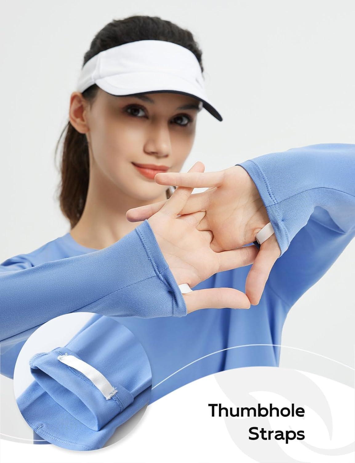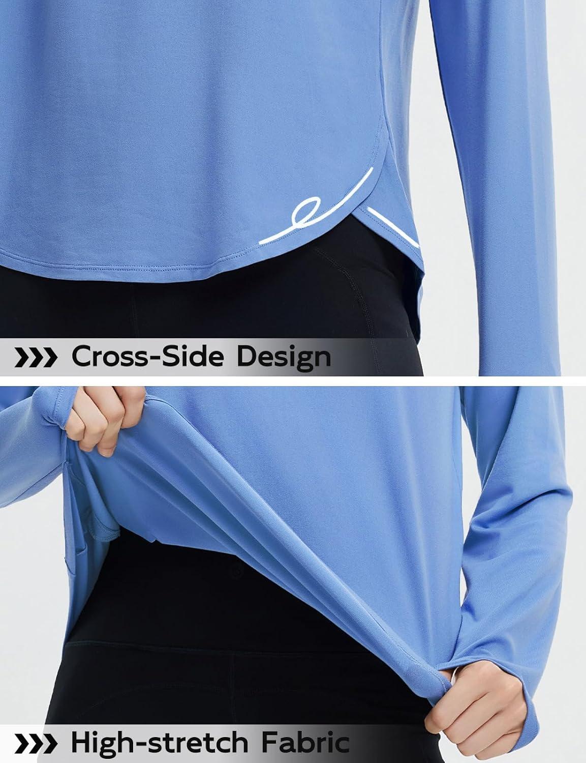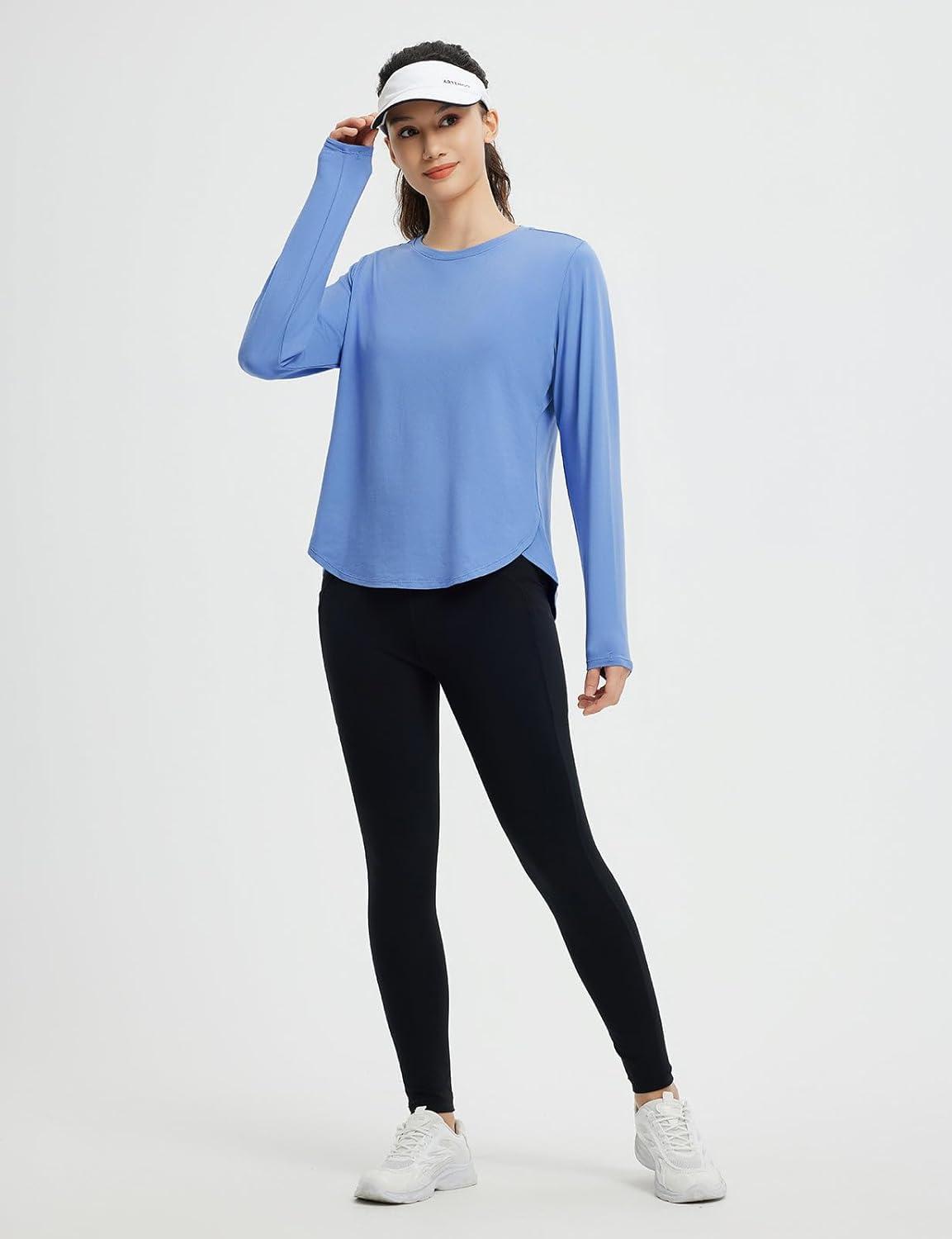 imagebaleaf Womens Long Sleeve Workout Shirts Lightweight Quick Dry Running Athletic Yoga Tops with Curved Hem Thumb LoopLight Blue