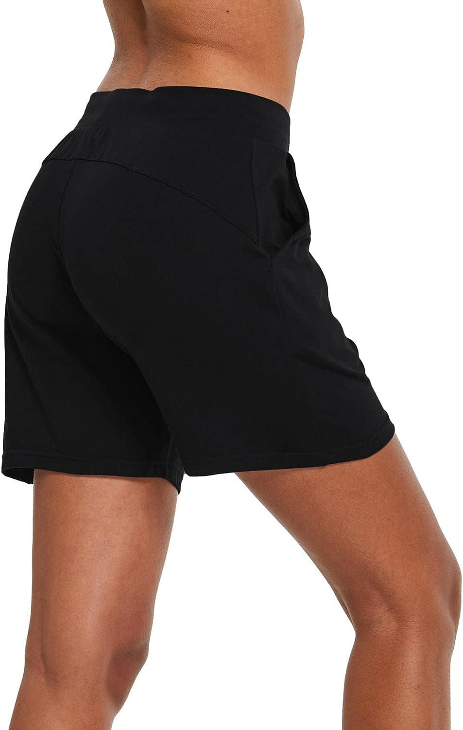 baleaf Womens Lounge Shorts Cotton Sweat Athletic Shorts with Pockets High Waist Summer Casual(Black)