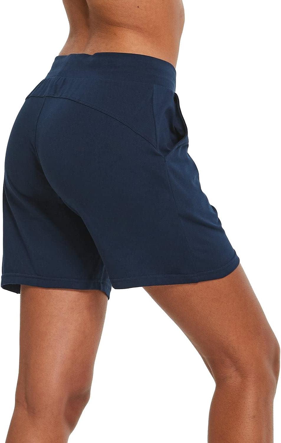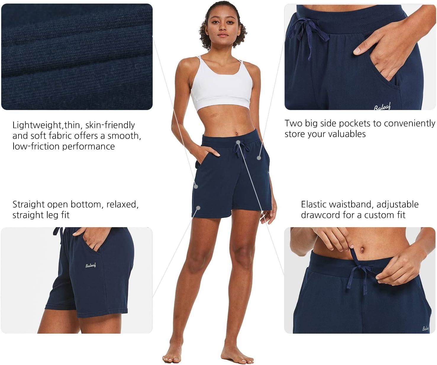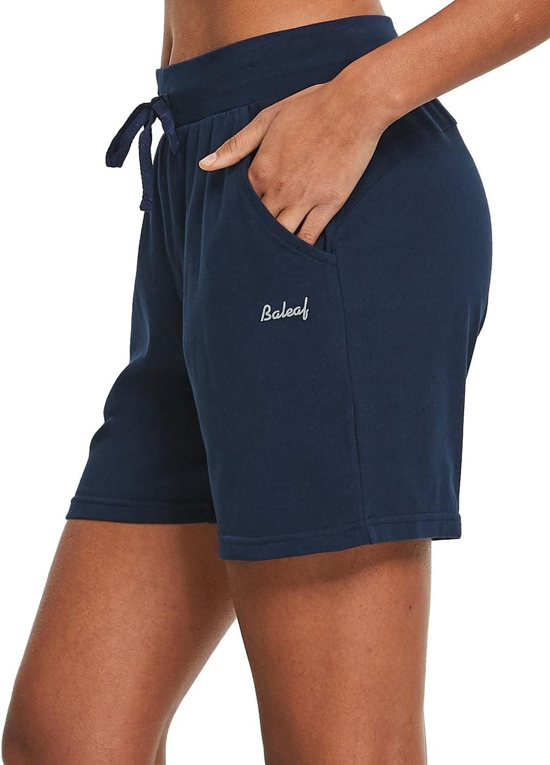 baleaf Womens Lounge Shorts Cotton Sweat Athletic Shorts with Pockets High Waist Summer Casual(Navy Blue)