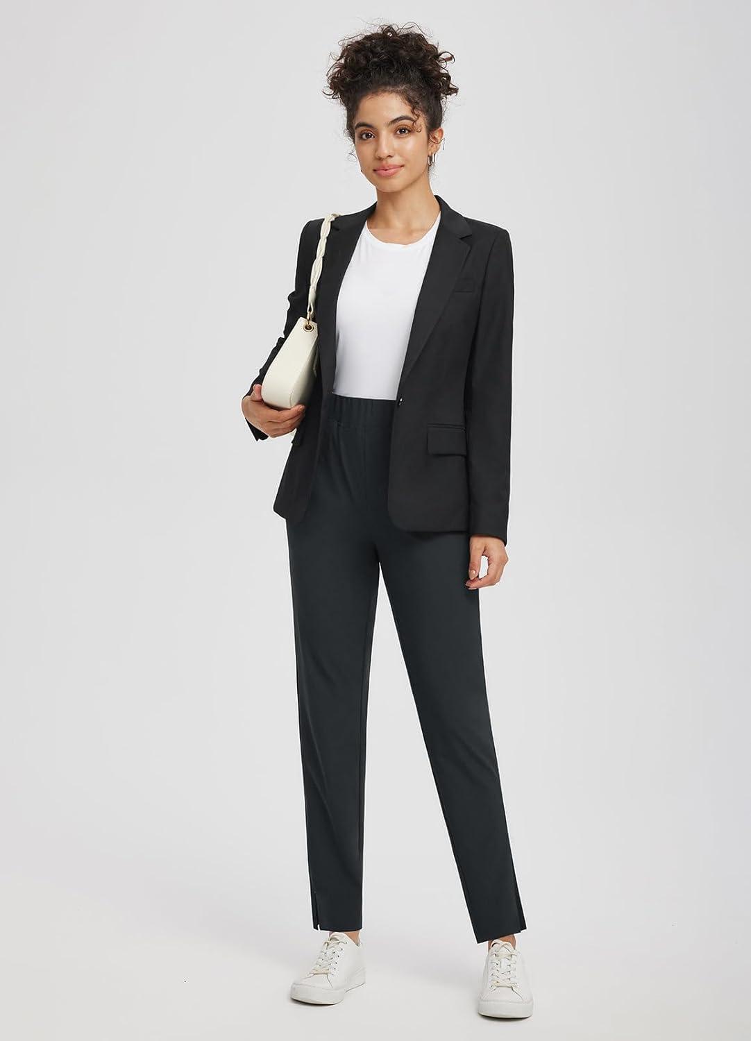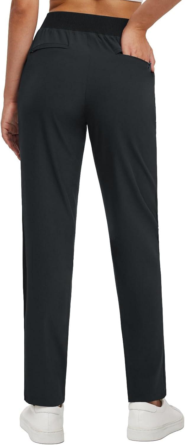 imagebaleaf Womens Pants with Zipper Pockets Stretch Golf Pants High Waist Travel Athletic Work Casual UPF50Black