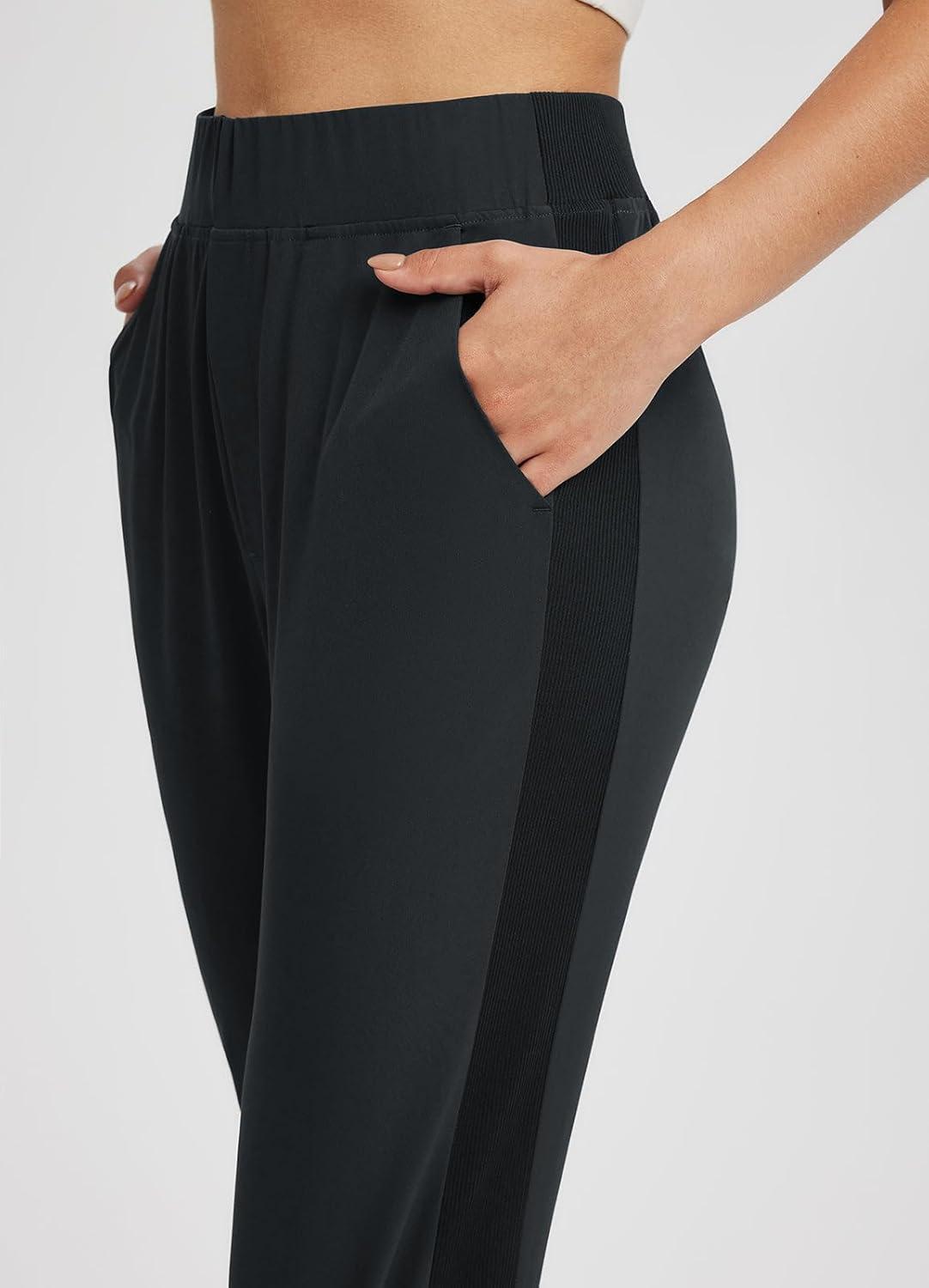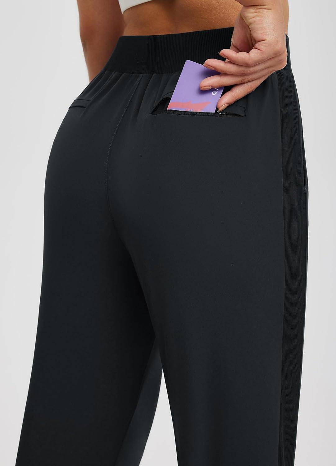 baleaf Women's Pants with Zipper Pockets Stretch Golf Pants High Waist Travel Athletic Work Casual UPF50+(Black)
