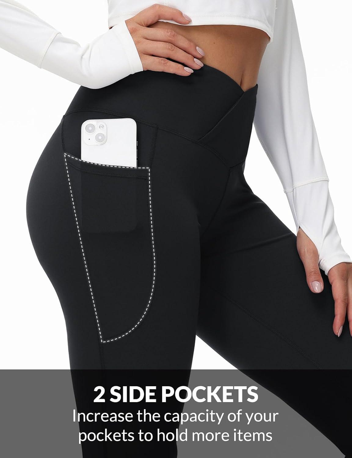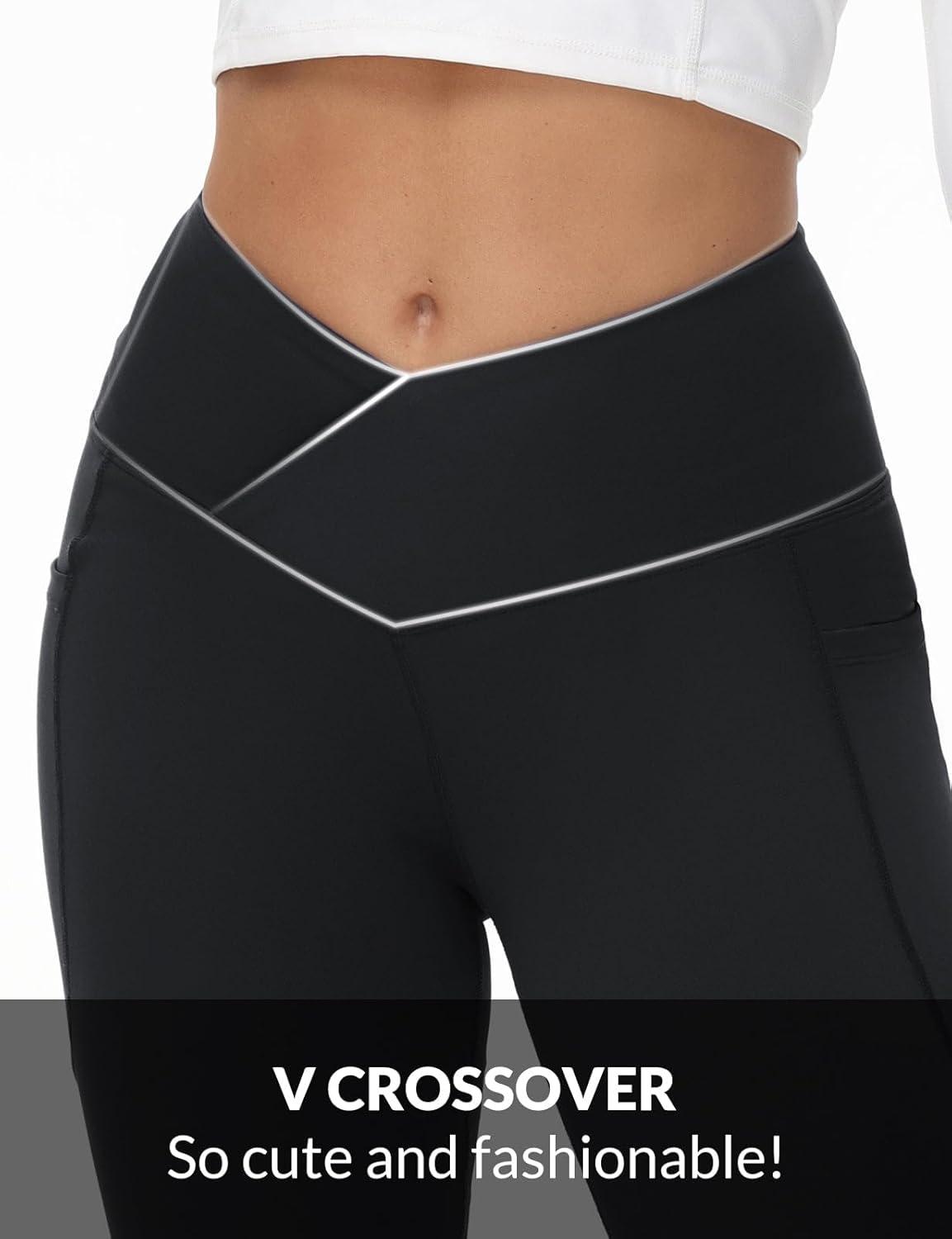 imagebaleaf Womens Petite Flare Leggings Tummy Control Crossover High Waisted Yoga Pants with Pockets Work Casual 27Black
