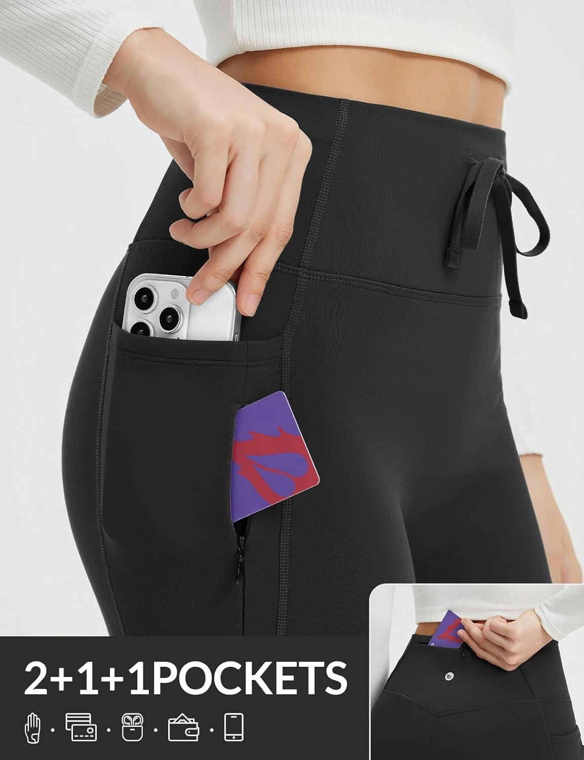 baleaf Women’s Petite Fleece Lined Pants Winter Thermal Warm Yoga Flare Leggings 27″ Snow Pants(Black)