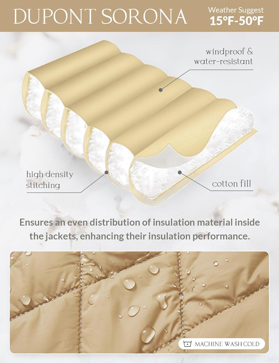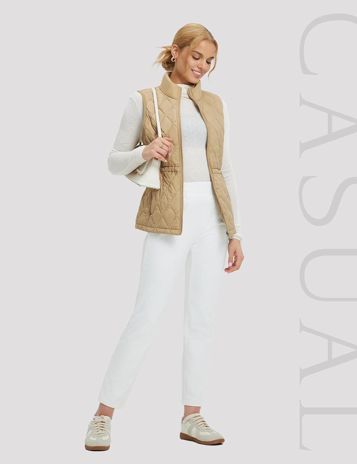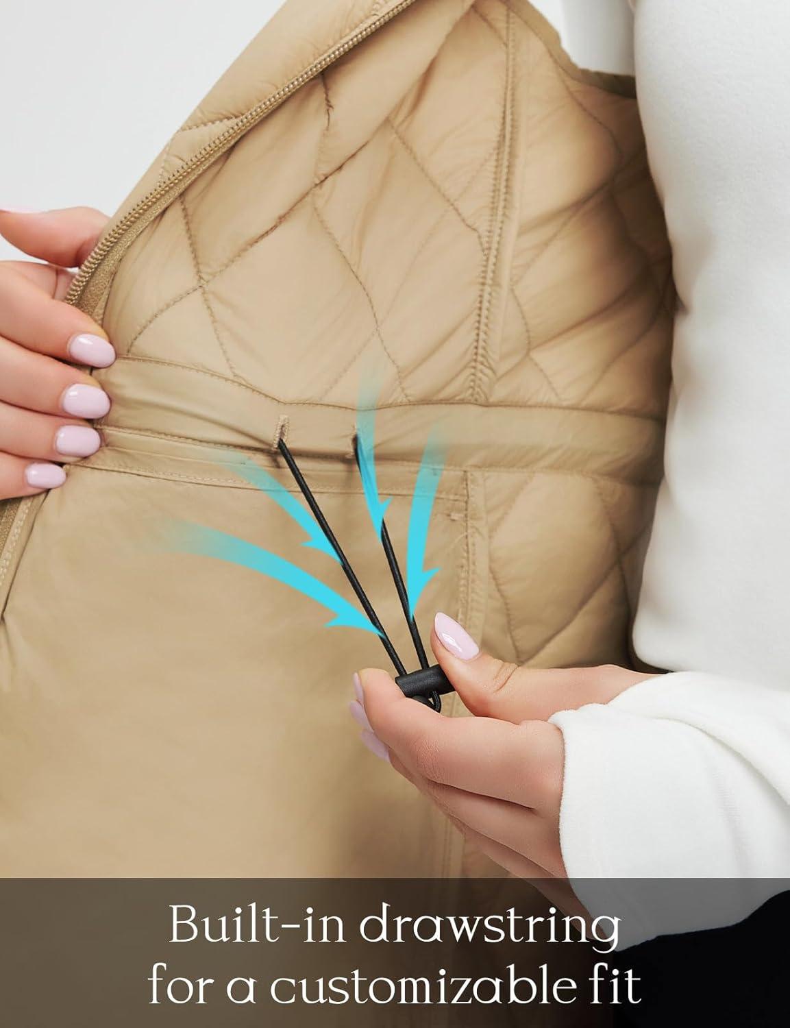 imagebaleaf Womens Puffer Drawstring Vest Lightweight Winter Warm Stand Collar Quilted Golf Vests Water Resistant Zip PocketsBrown