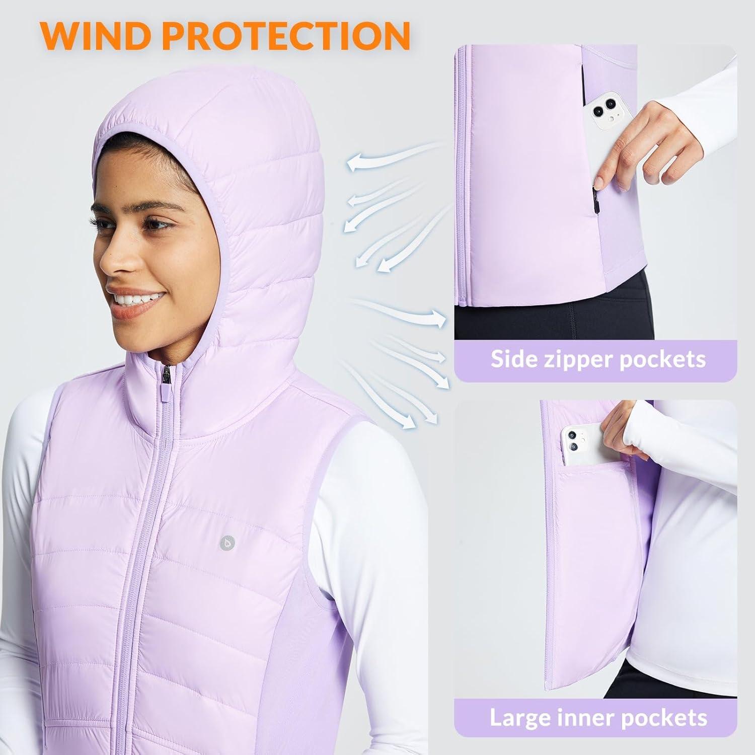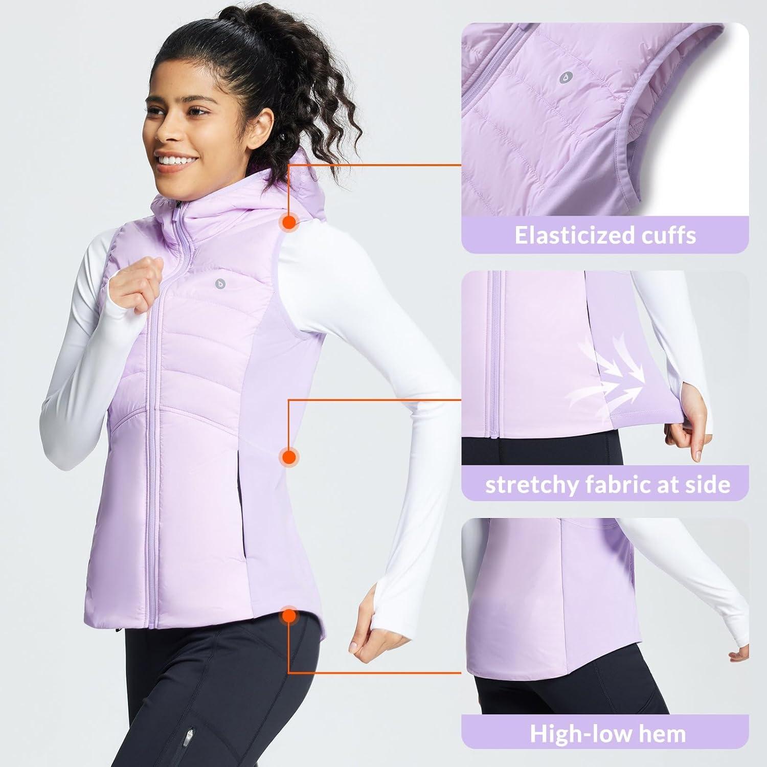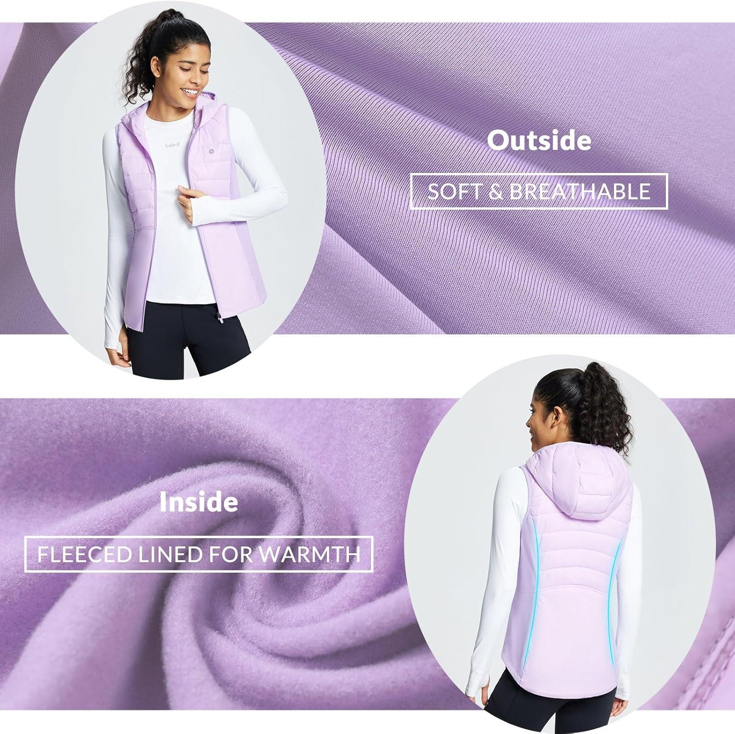 baleaf Women’s Puffer Vest Hooded Running Vests Slim Fit Fleece Sleeveless Lightweight Jacket Fall Winter(Light Purple)