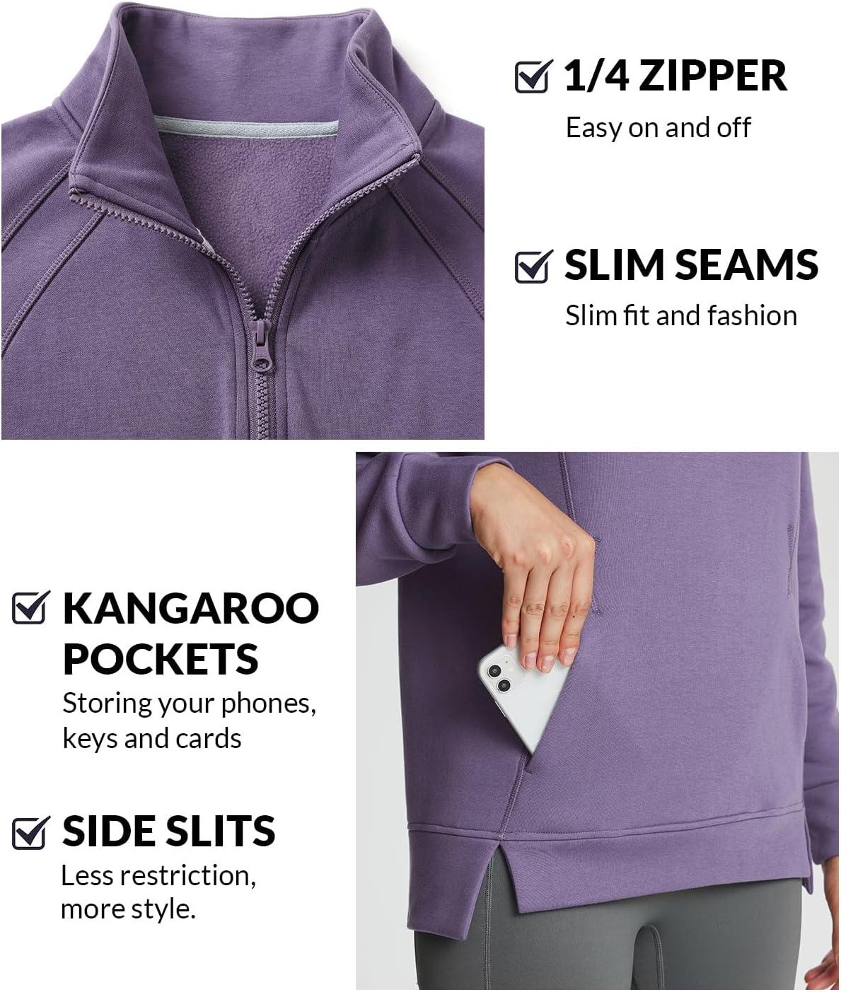 baleaf Women's Quarter Zip Pullover Fleece Jacket Oversized Hoodie Fall Sweatshirts Casual with Pockets(Purple)
