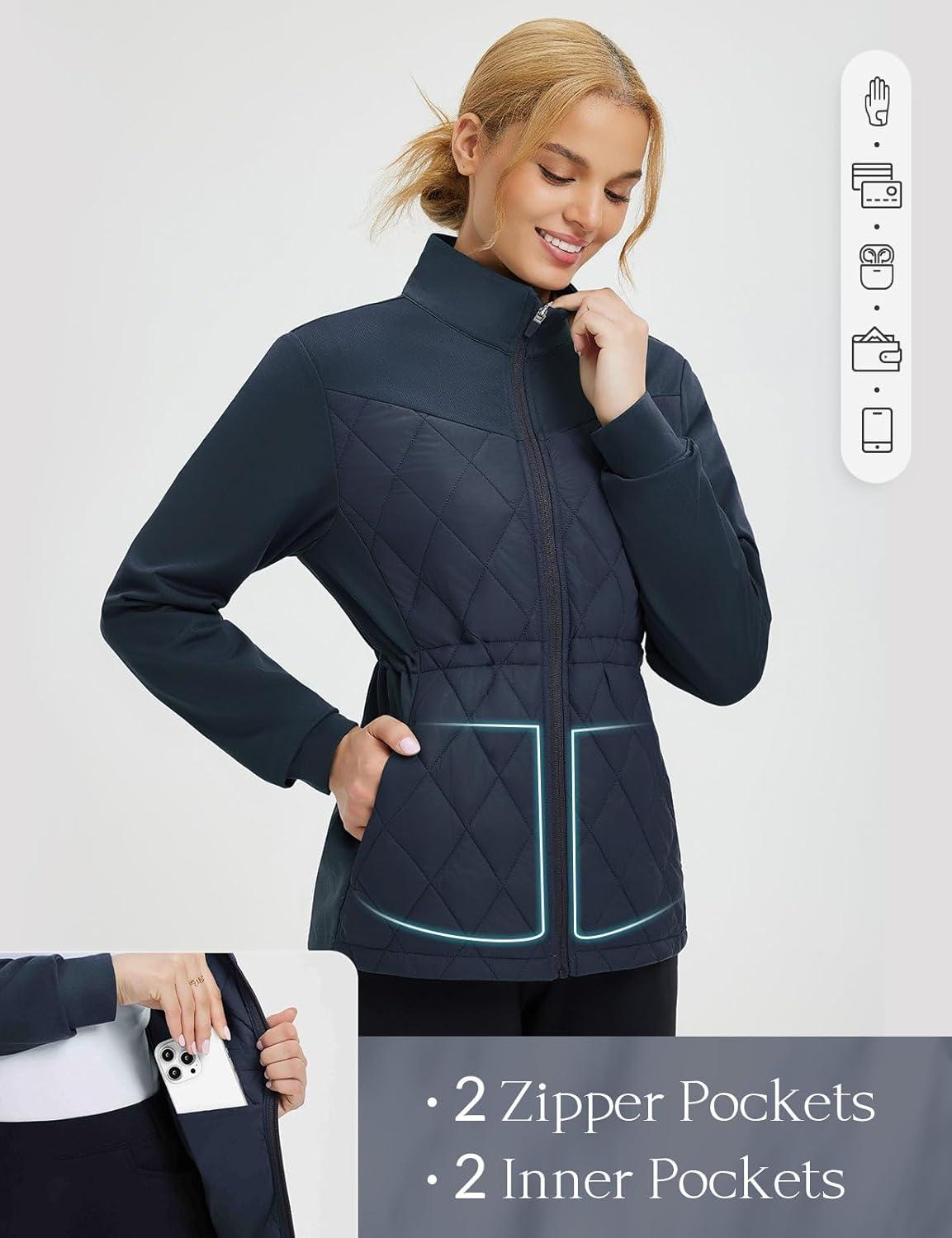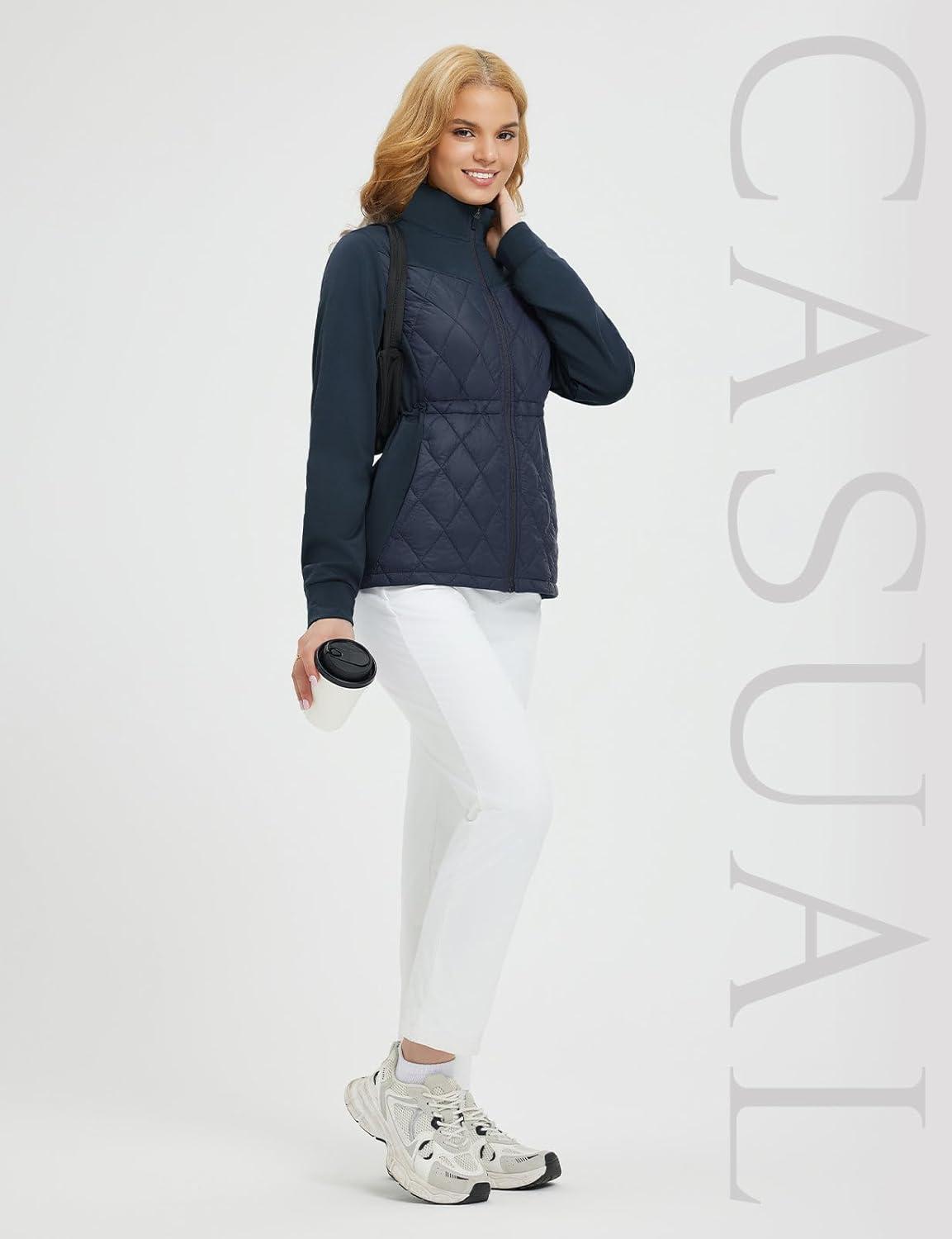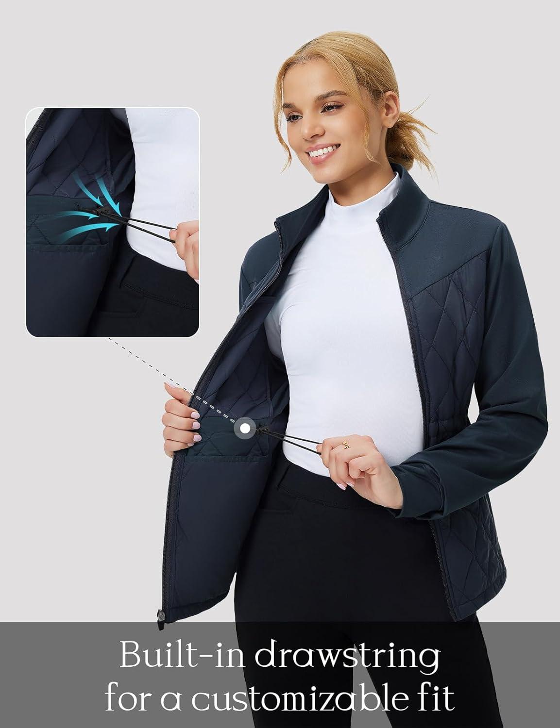 baleaf Women’s Quilted Jackets Golf Winter Lightweight Warm Stand Collar Water Resistant Puffer Jacket 4 Pockets(Navy Blue)