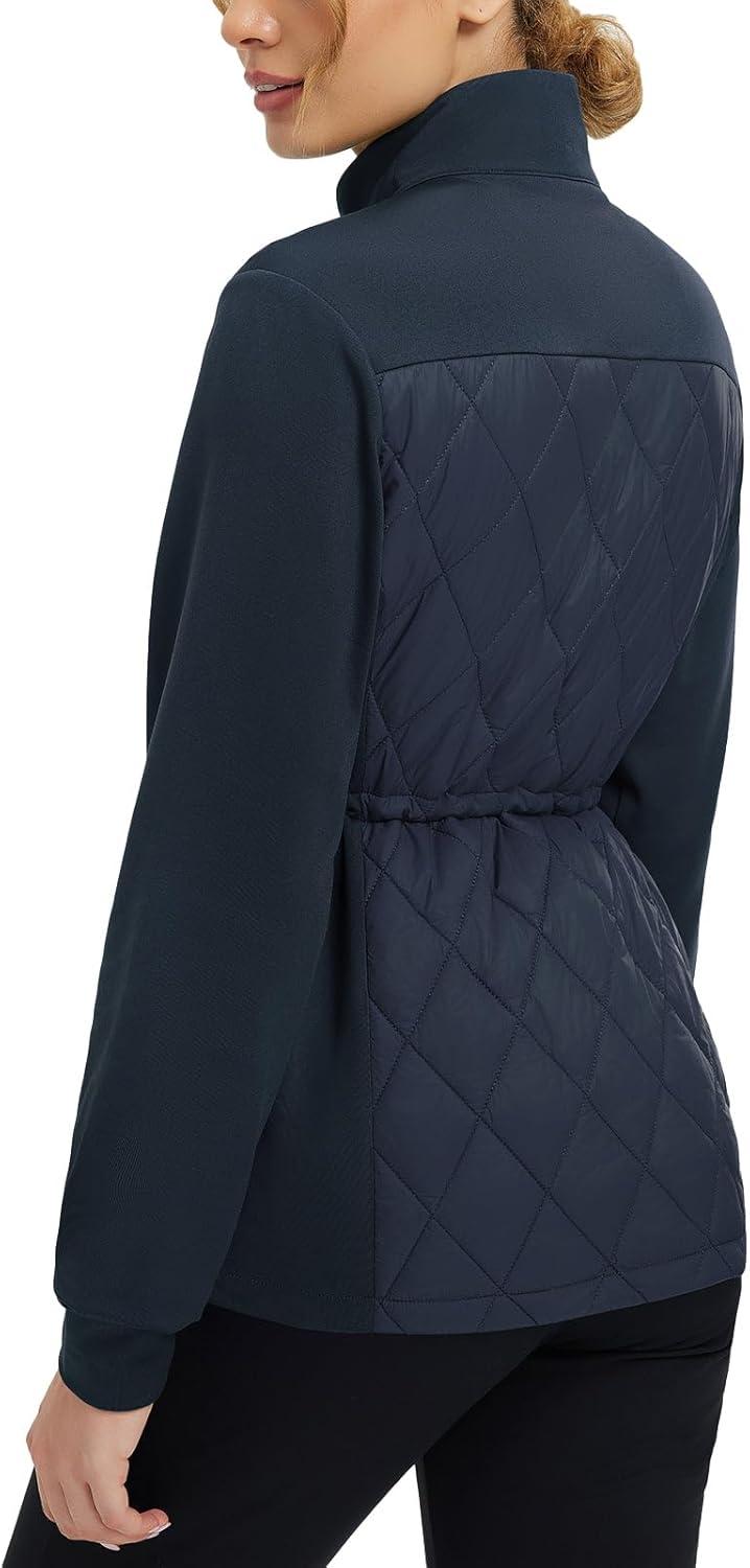 baleaf Women's Quilted Jackets Golf Winter Lightweight Warm Stand Collar Water Resistant Puffer Jacket 4 Pockets(Navy Blue)