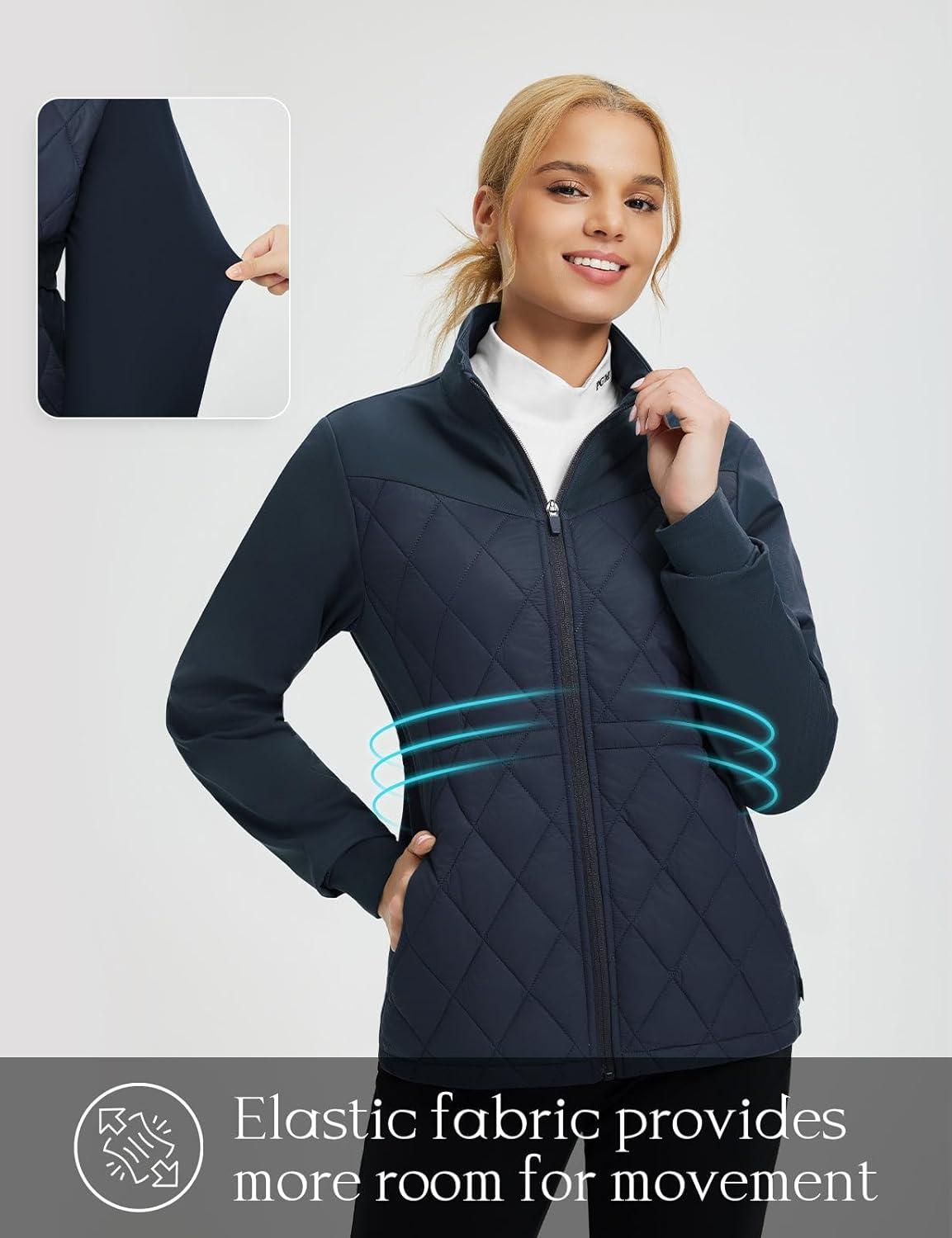imagebaleaf Womens Quilted Jackets Golf Winter Lightweight Warm Stand Collar Water Resistant Puffer Jacket 4 PocketsNavy Blue