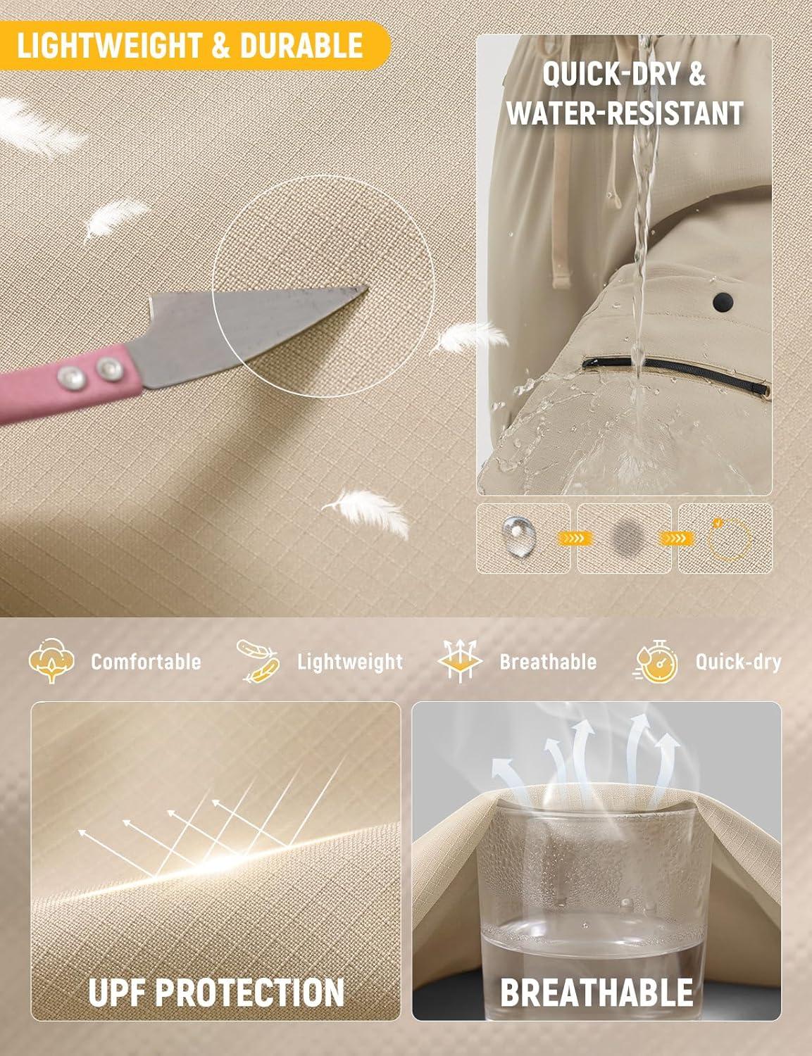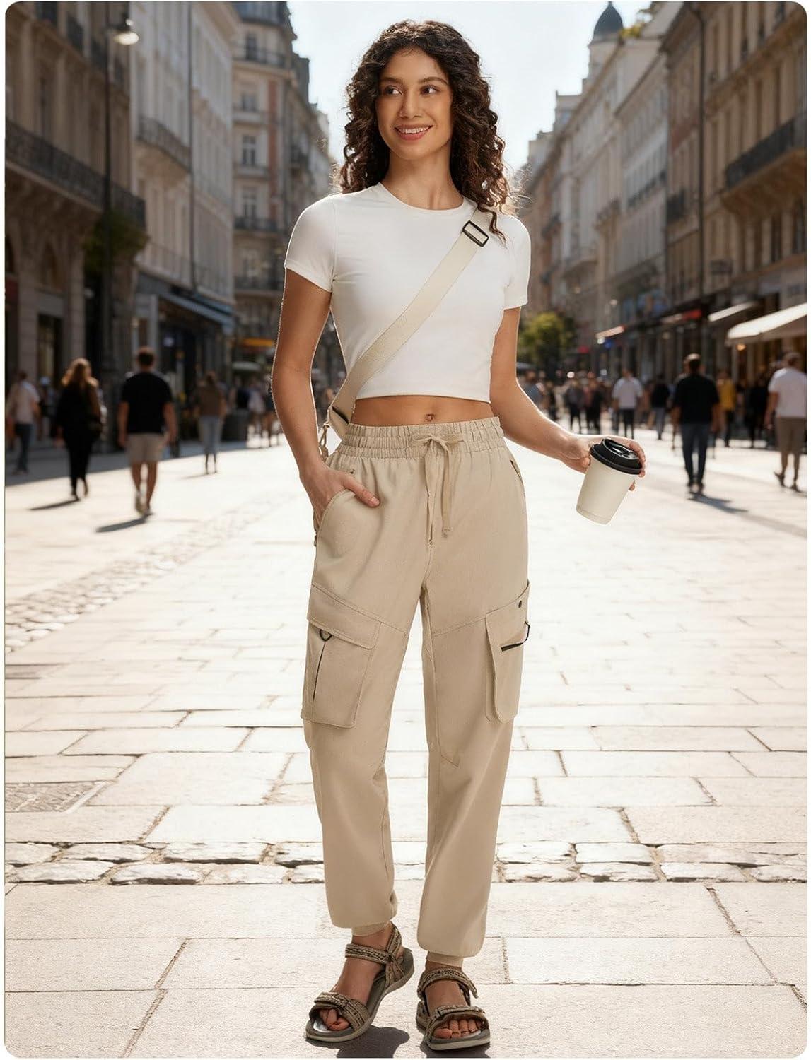 imagebaleaf Womens Ripstop Hiking Pants with 6 Pockets Water Resistant Joggers Lightweight Quick Dry Elastic Waist Travel PantsKhaki