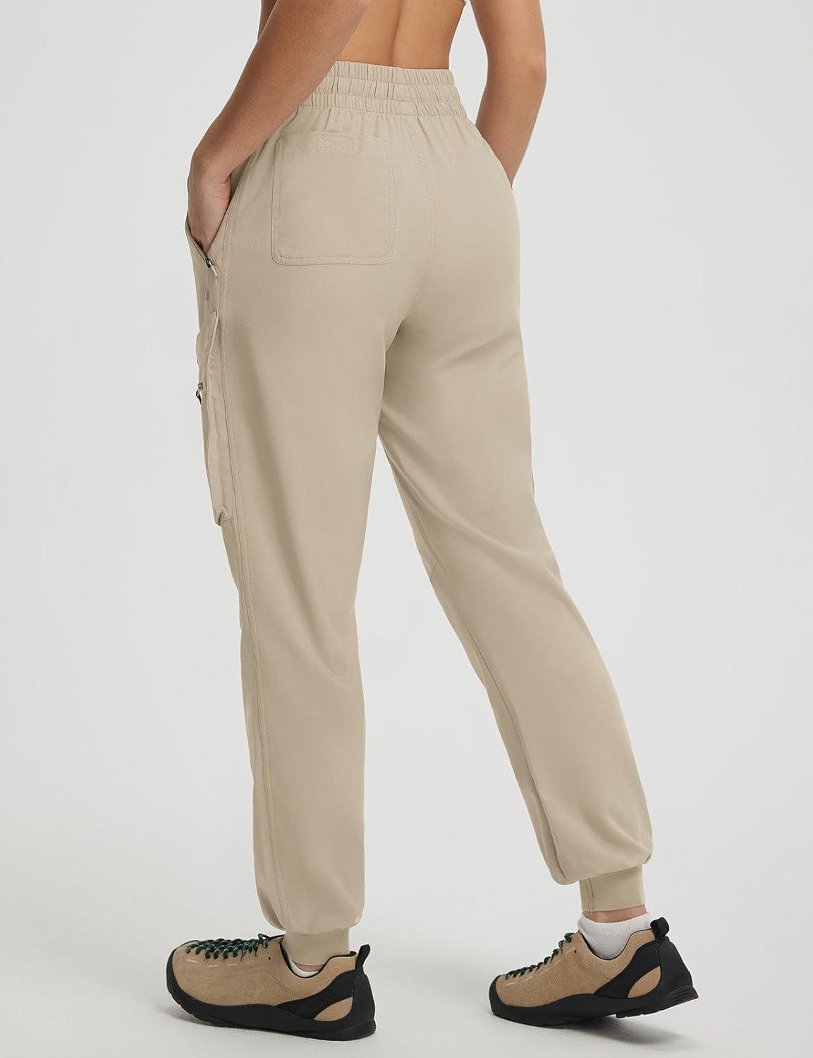 baleaf Women's Ripstop Hiking Pants with 6 Pockets Water Resistant Joggers Lightweight Quick Dry Elastic Waist Travel Pants(Khaki)