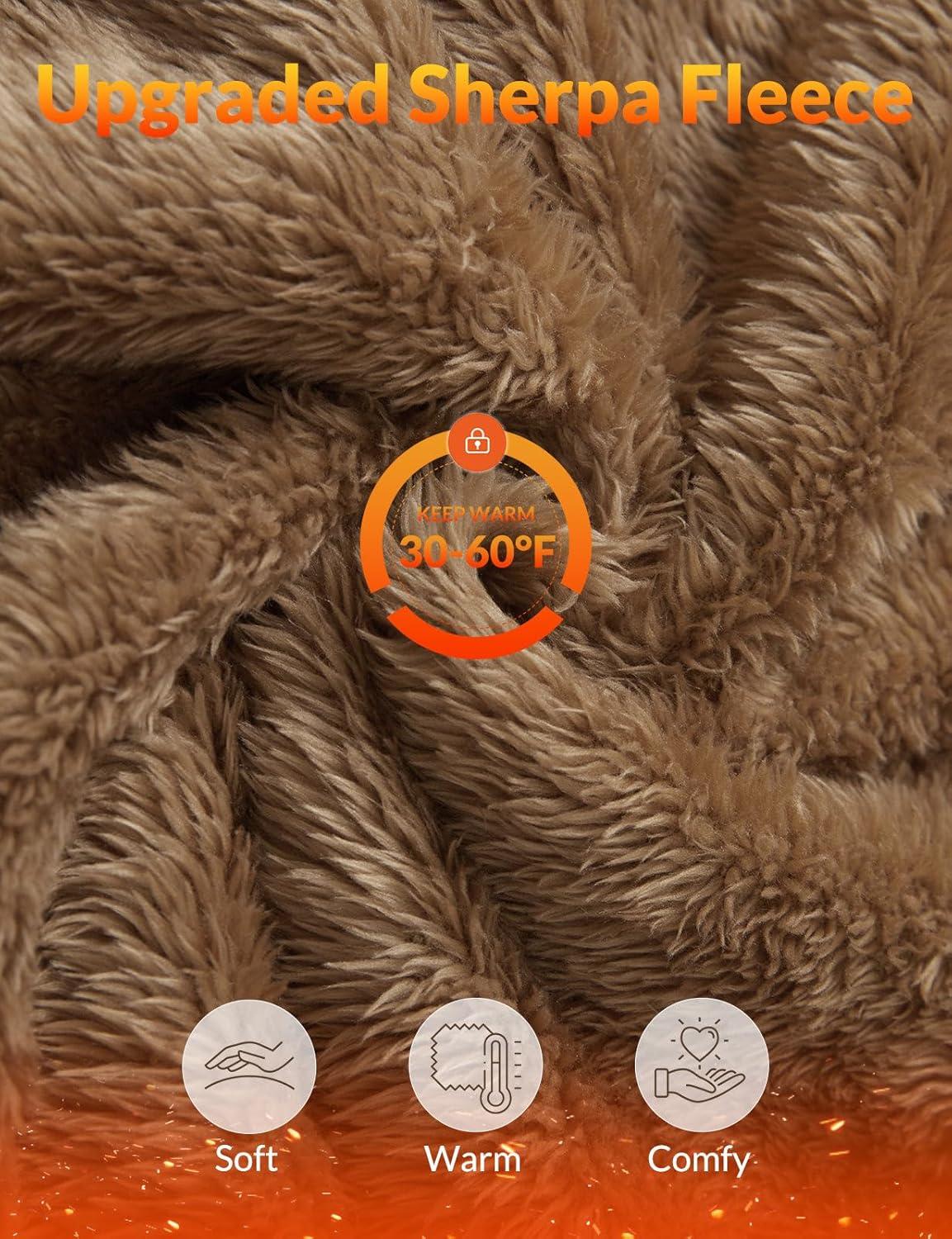 imagebaleaf Womens Sherpa Fleece Lined Jakcets with Hood Button Down Drawstring Winter Casual Warm Coat with PocketsBrown