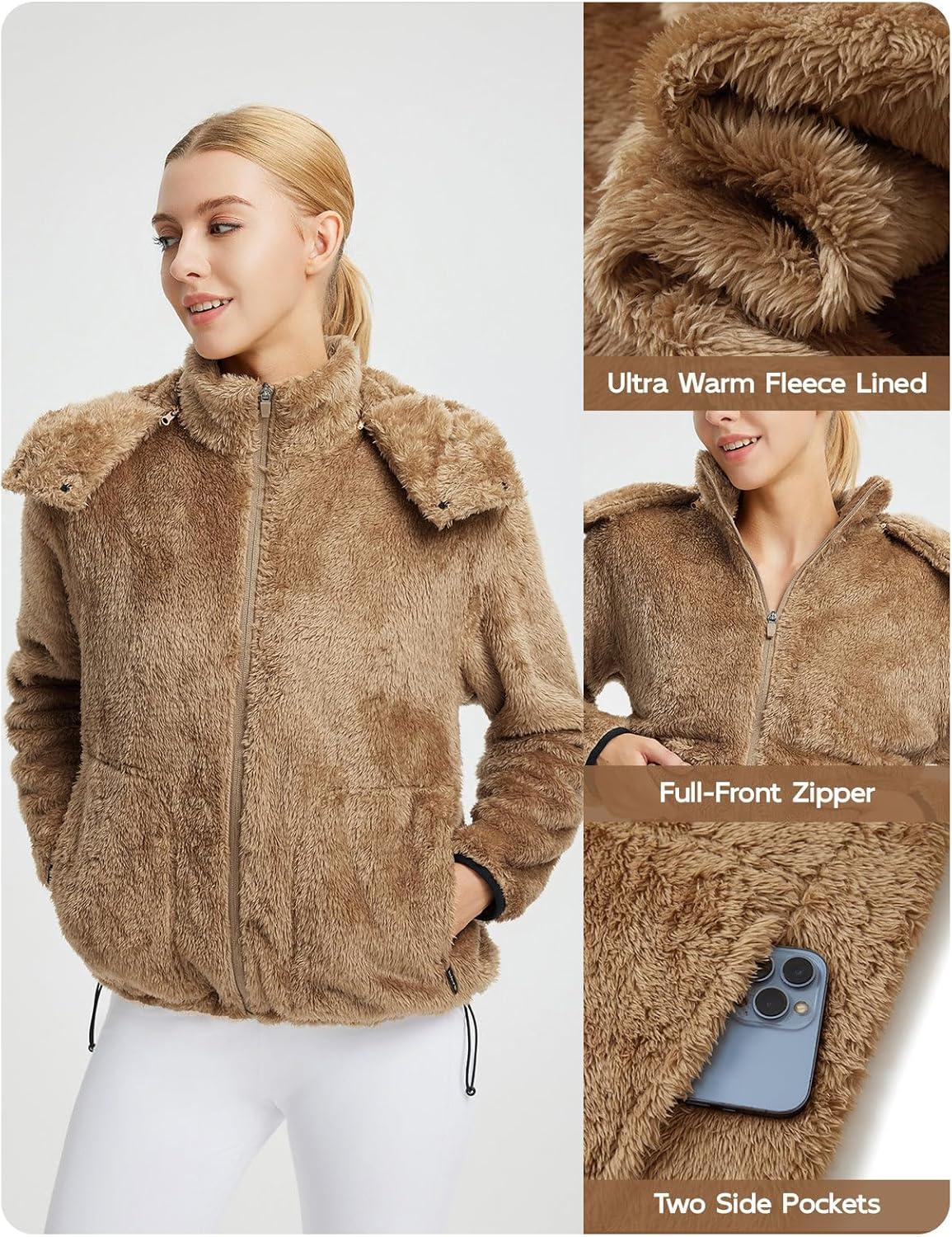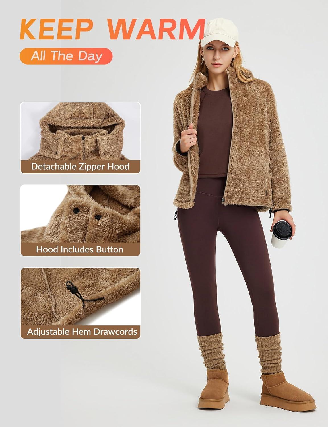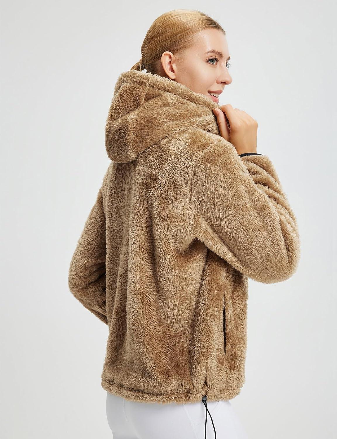 baleaf Womens Sherpa Fleece Lined Jakcets with Hood Button Down Drawstring Winter Casual Warm Coat with Pockets(Brown)