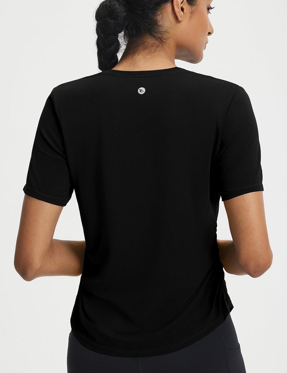 baleaf Women's Short Sleeve Yoga Shirts Soft UPF 50+ Workout Tops Sun Protection Athletic T-Shirts(Black)