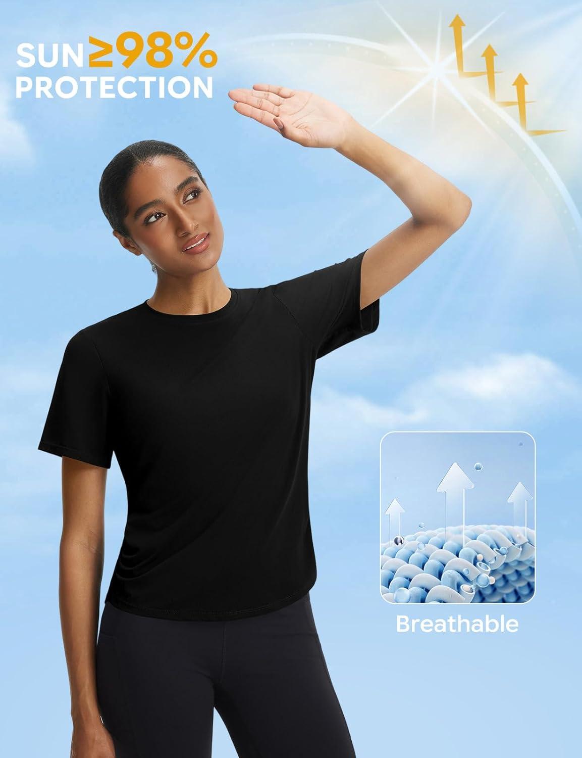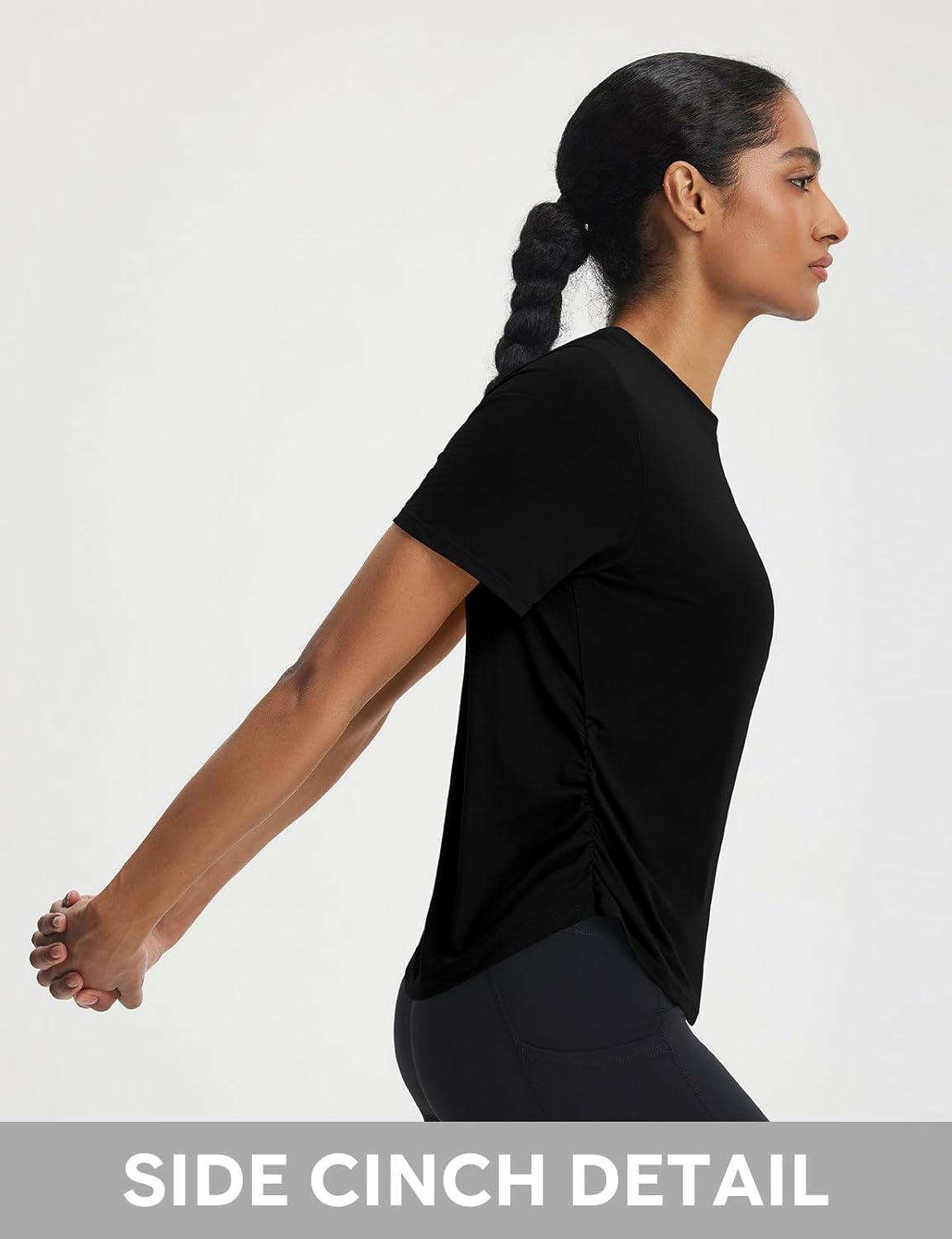 imagebaleaf Womens Short Sleeve Yoga Shirts Soft UPF 50 Workout Tops Sun Protection Athletic TShirtsBlack