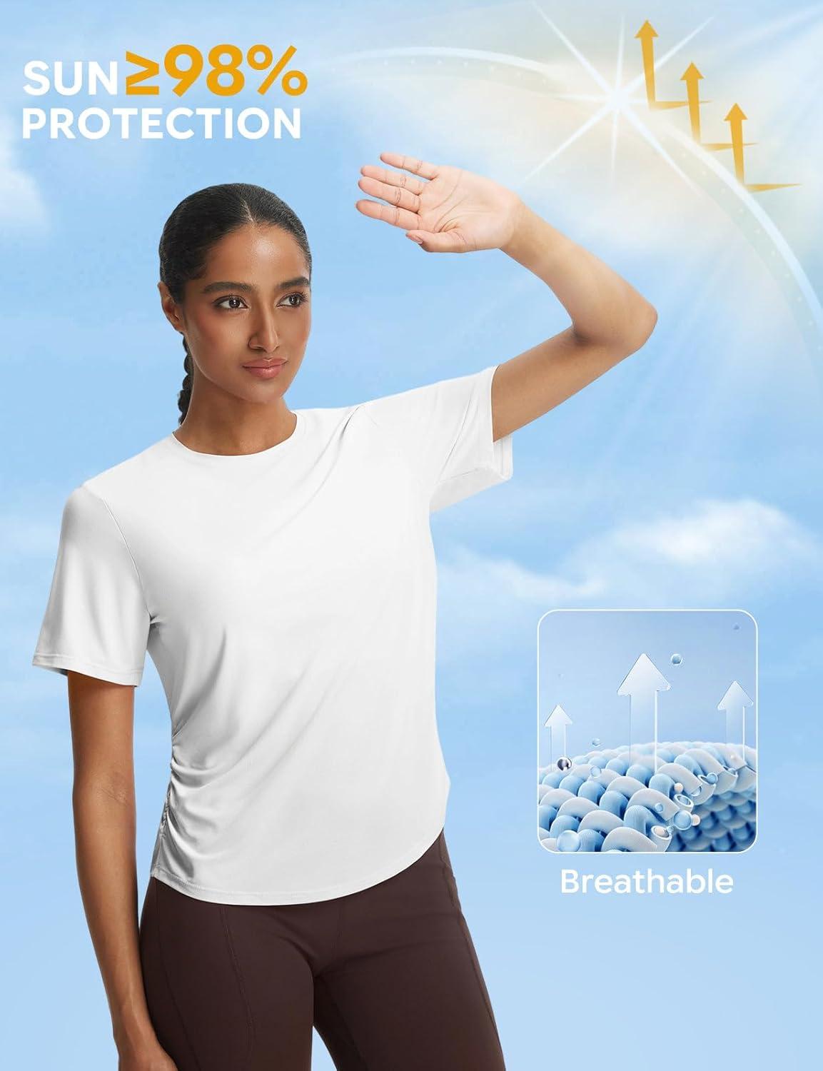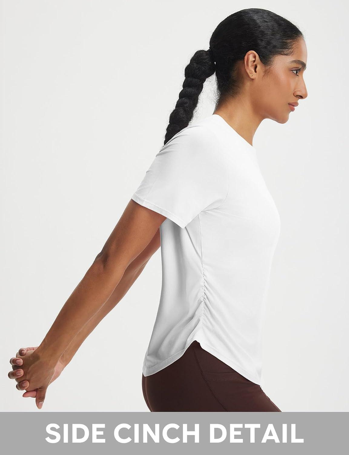 imagebaleaf Womens Short Sleeve Yoga Shirts Soft UPF 50 Workout Tops Sun Protection Athletic TShirtsStar White