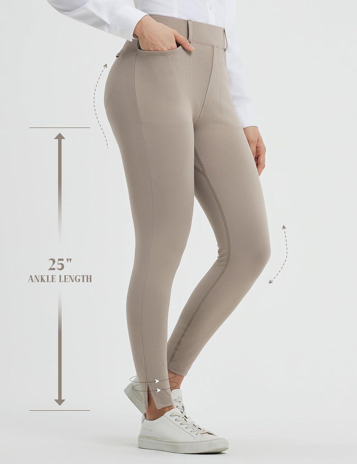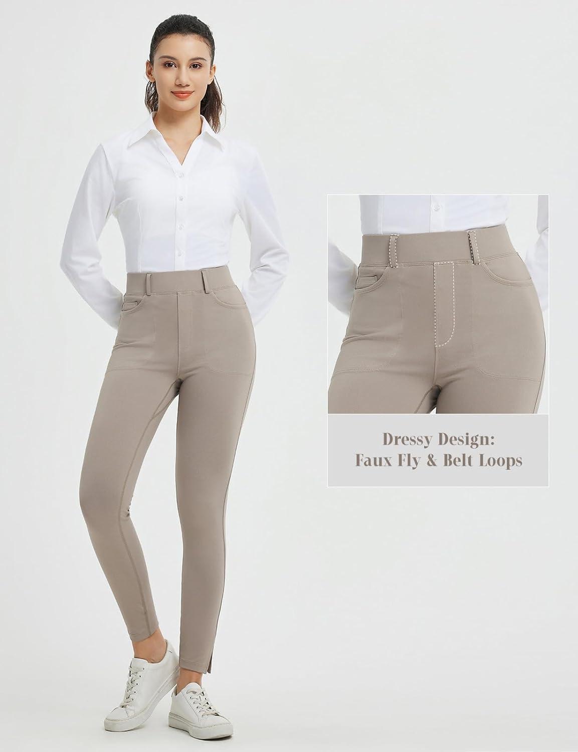 baleaf Womens Skinny Dress Pants Stretch Petite Yoga Work Pants Pull On Dressy Leggings with Zipper Pockets 7/8 Ankle(Khaki)