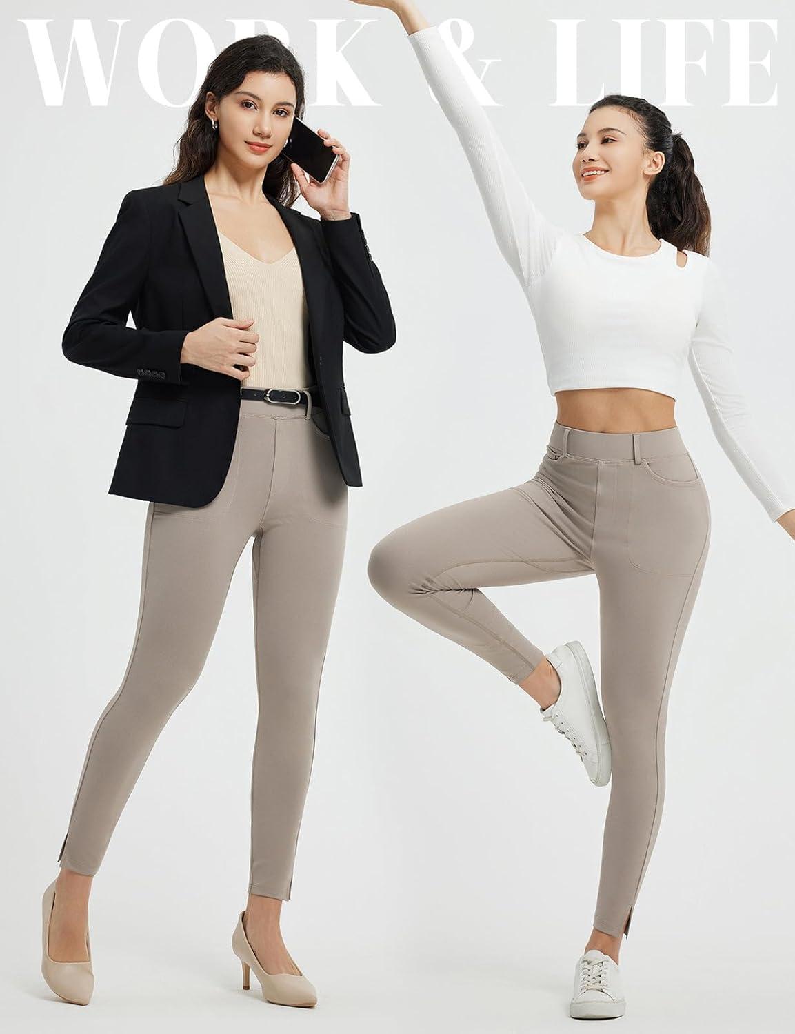 imagebaleaf Womens Skinny Dress Pants Stretch Petite Yoga Work Pants Pull On Dressy Leggings with Zipper Pockets 78 AnkleBlack