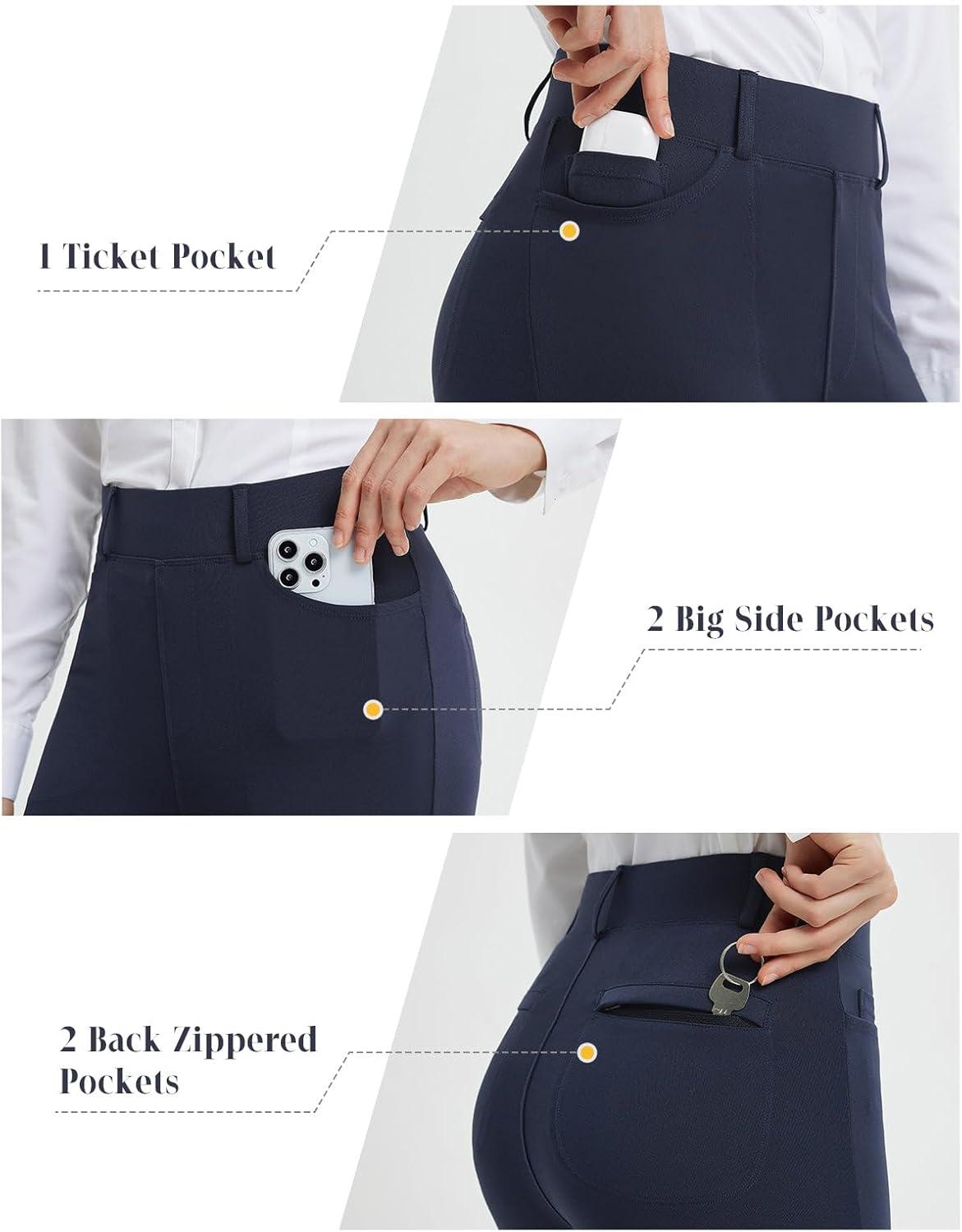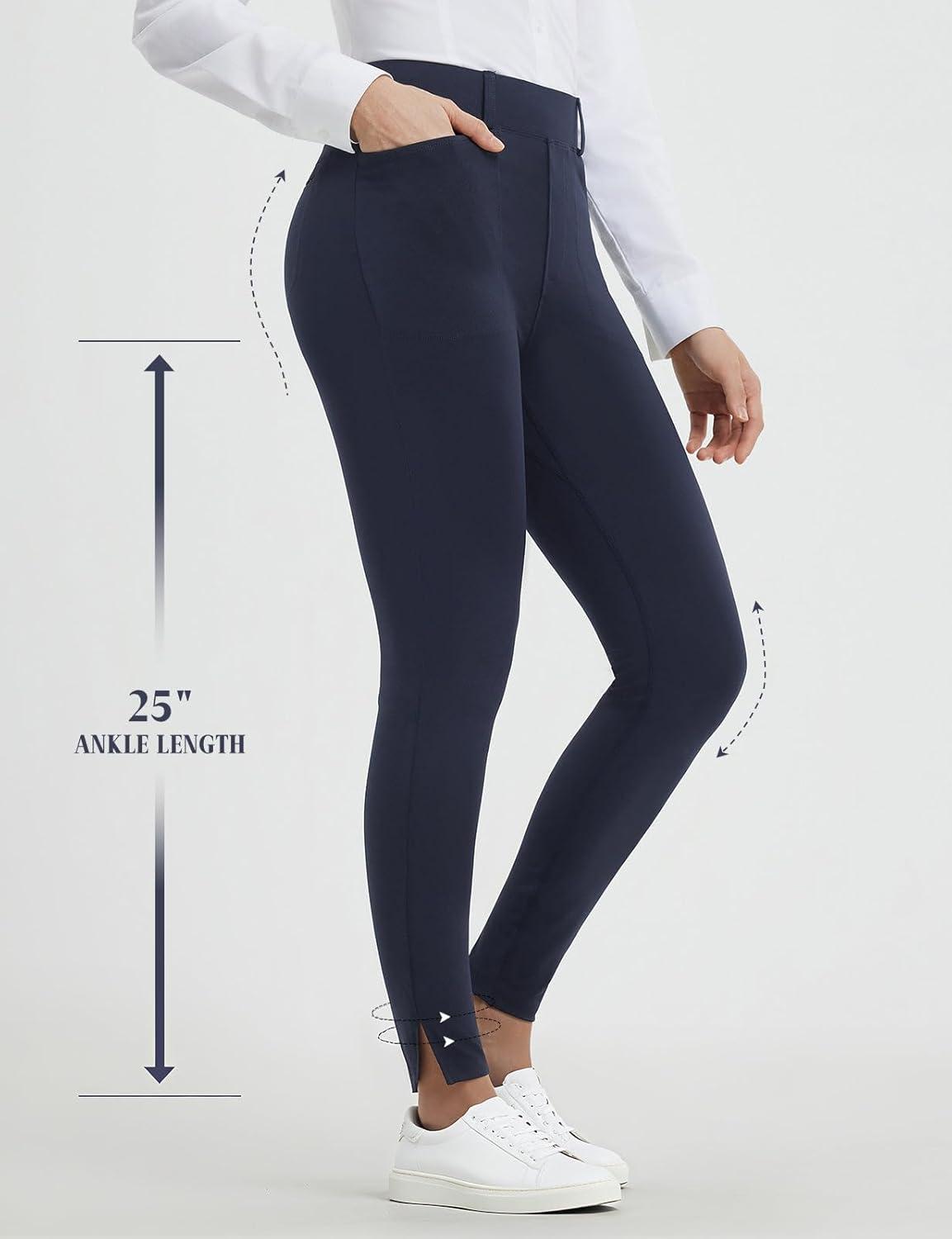 baleaf Womens Skinny Dress Pants Stretch Petite Yoga Work Pants Pull On Dressy Leggings with Zipper Pockets 7/8 Ankle(Navy Blue)