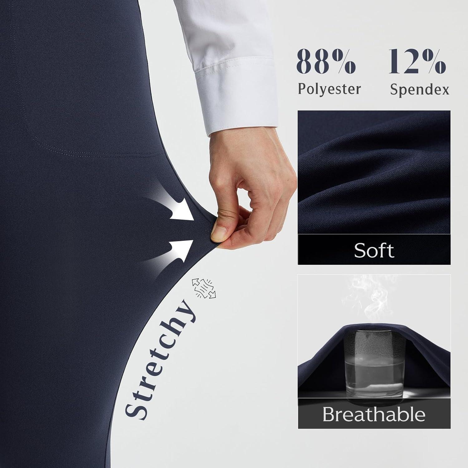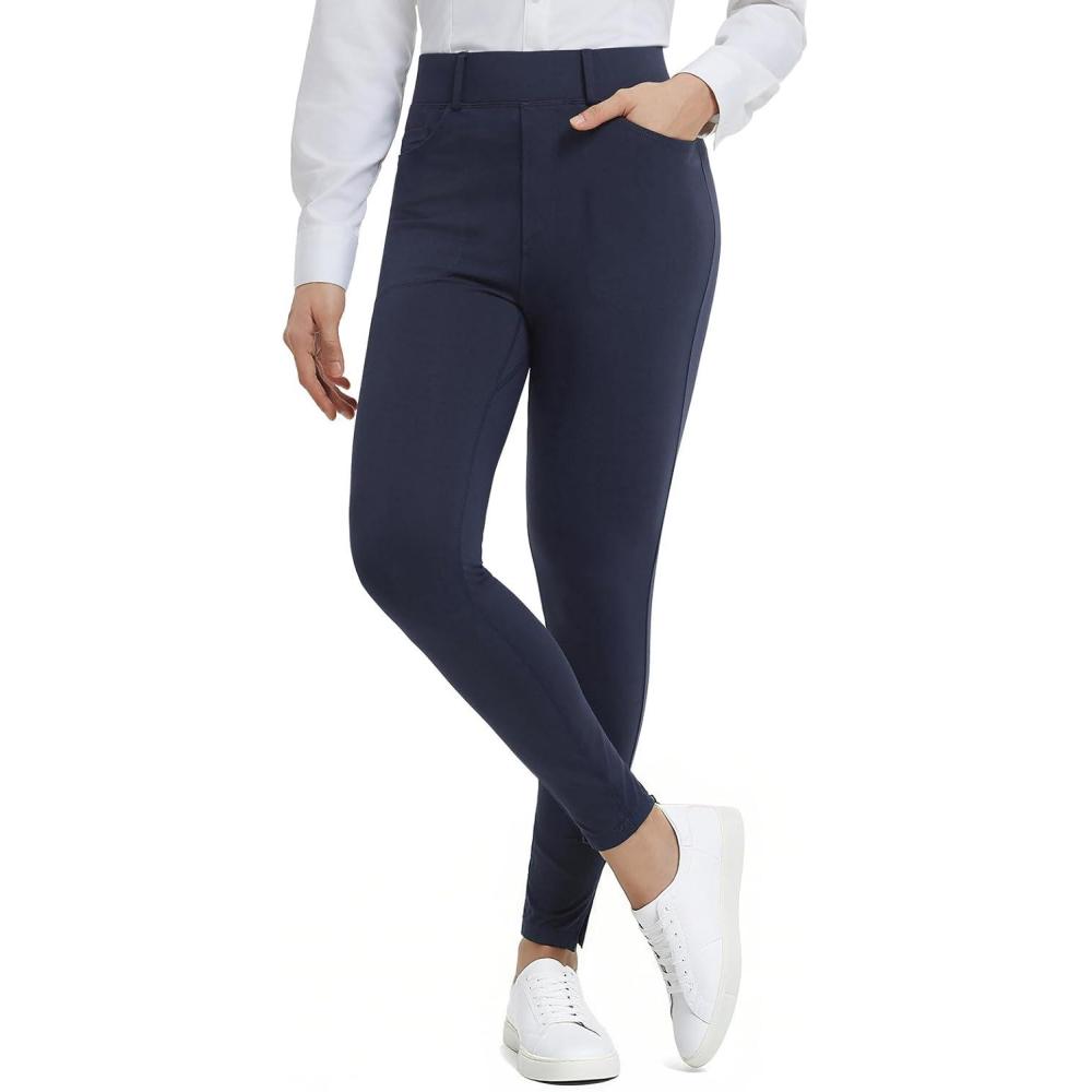 imagebaleaf Womens Skinny Dress Pants Stretch Petite Yoga Work Pants Pull On Dressy Leggings with Zipper Pockets 78 AnkleNavy Blue
