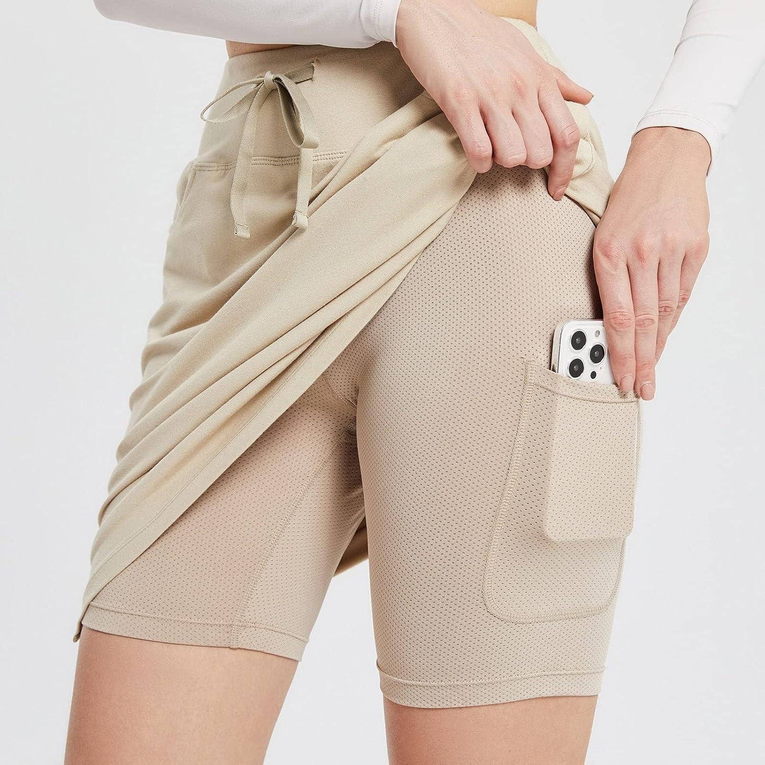 baleaf Women’s Skorts Skirts 20″ Knee Length Cotton Casual High Waist Drawstring Modest Golf Skort with Pocket(Khaki)