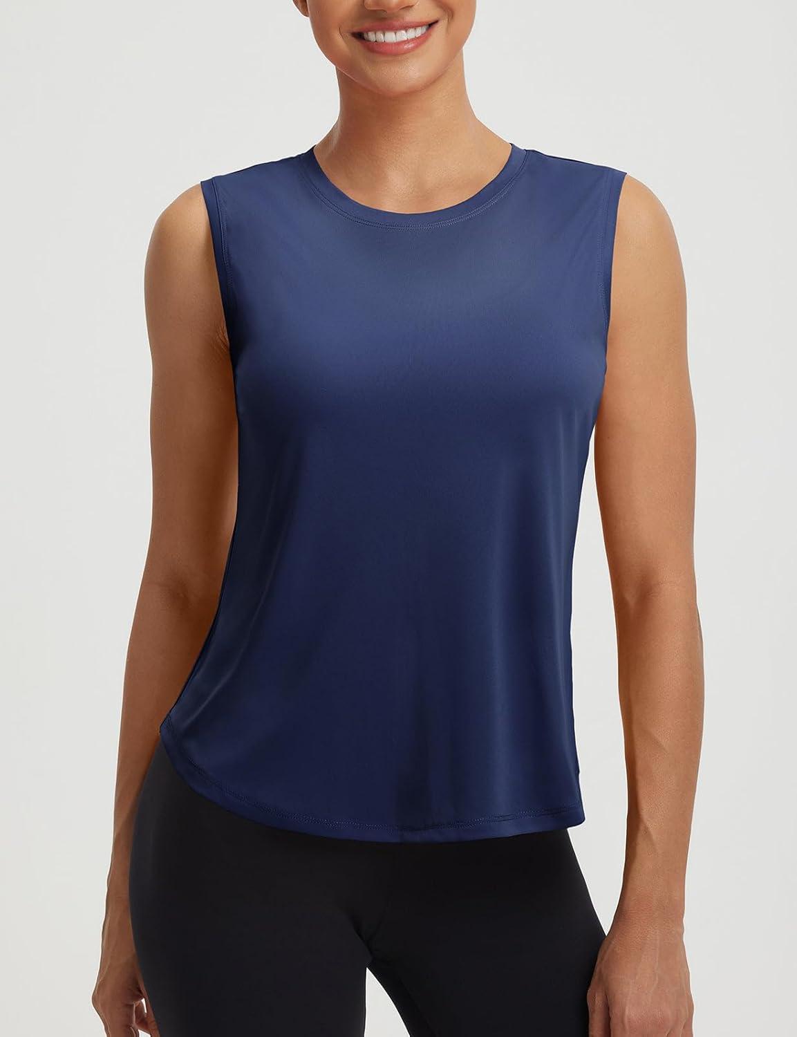 imagebaleaf Womens Sleeveless Athletic Tops Workout Tank Tops Running UPF 50 Breathable Lightweight Tennis Dry Loose FitNavy Blue