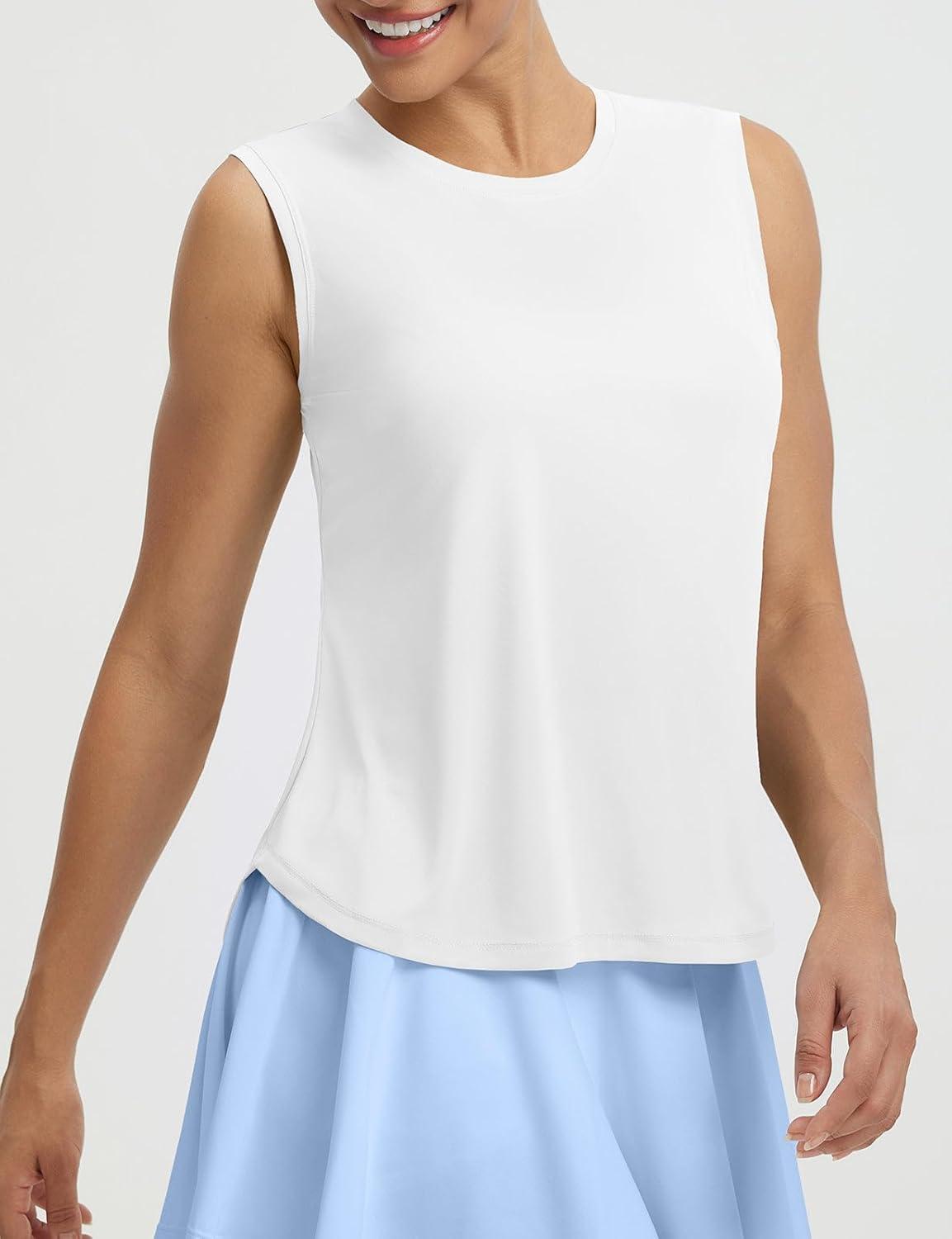 imagebaleaf Womens Sleeveless Athletic Tops Workout Tank Tops Running UPF 50 Breathable Lightweight Tennis Dry Loose FitWhite