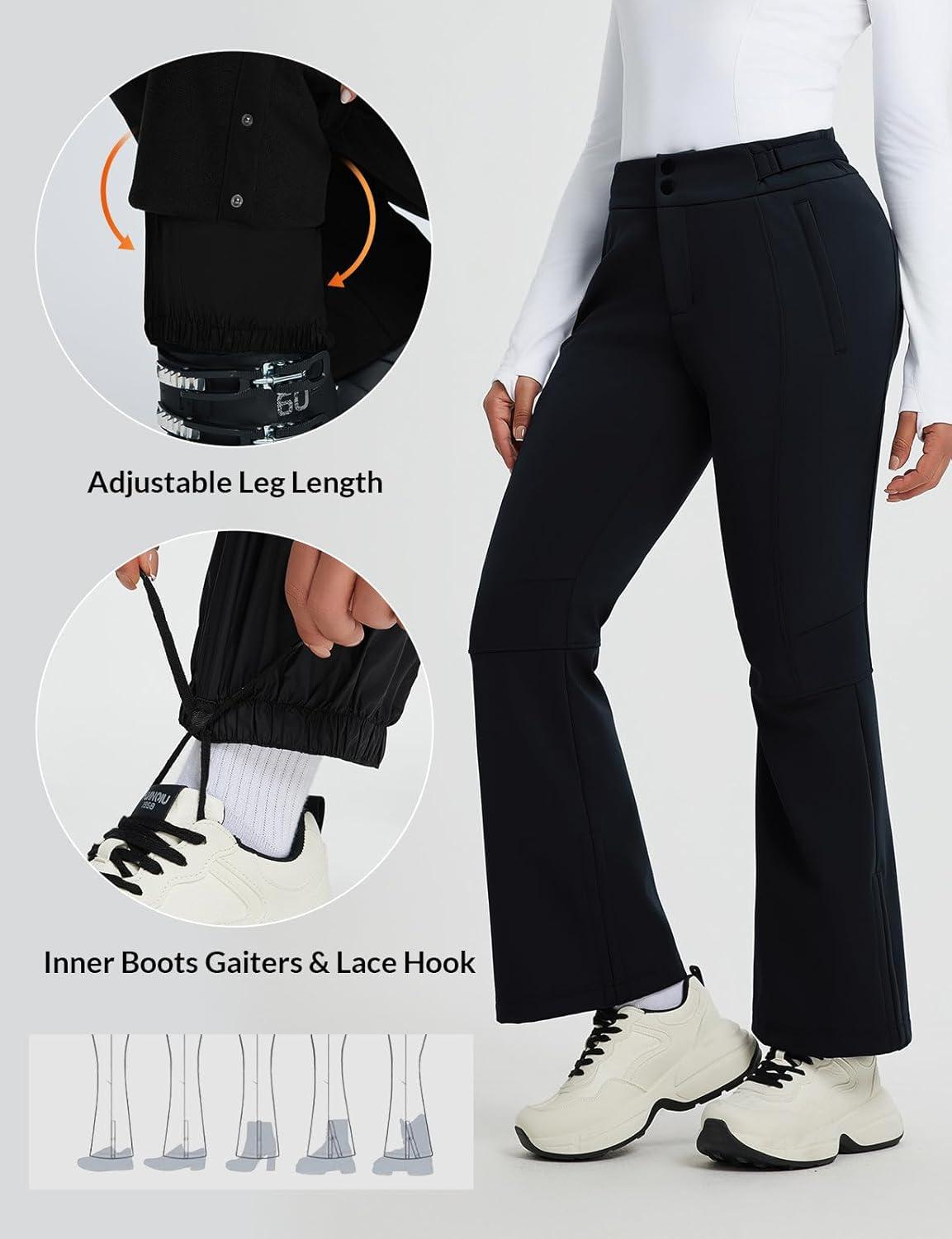 imagebaleaf Womens Snow Pants Insulated Waterproof Slim Ski Pants Snowboard Winter Cold Weather GearBlack