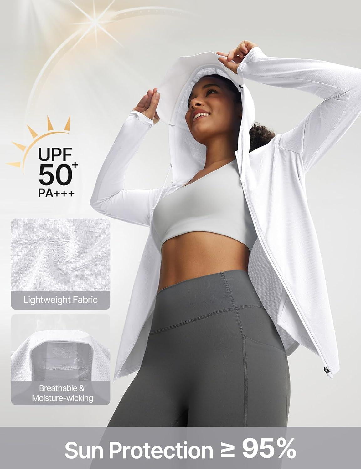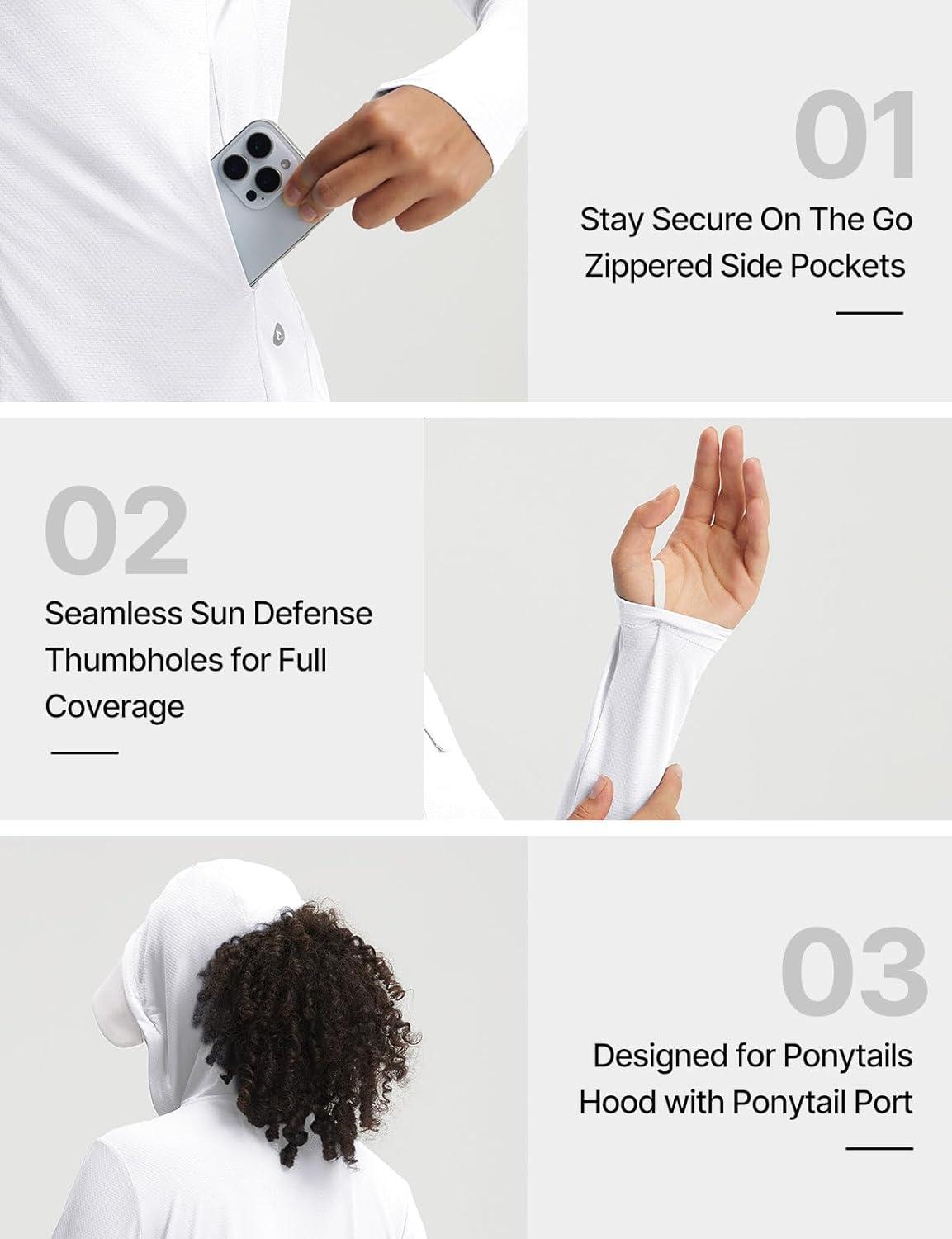 imagebaleaf Womens Sun Jacket with Removable Brim UPF 50 Lightweight UV SPF Shirts Long Sleeve Full Zip Up Hoodie Outdoor HikingWhite