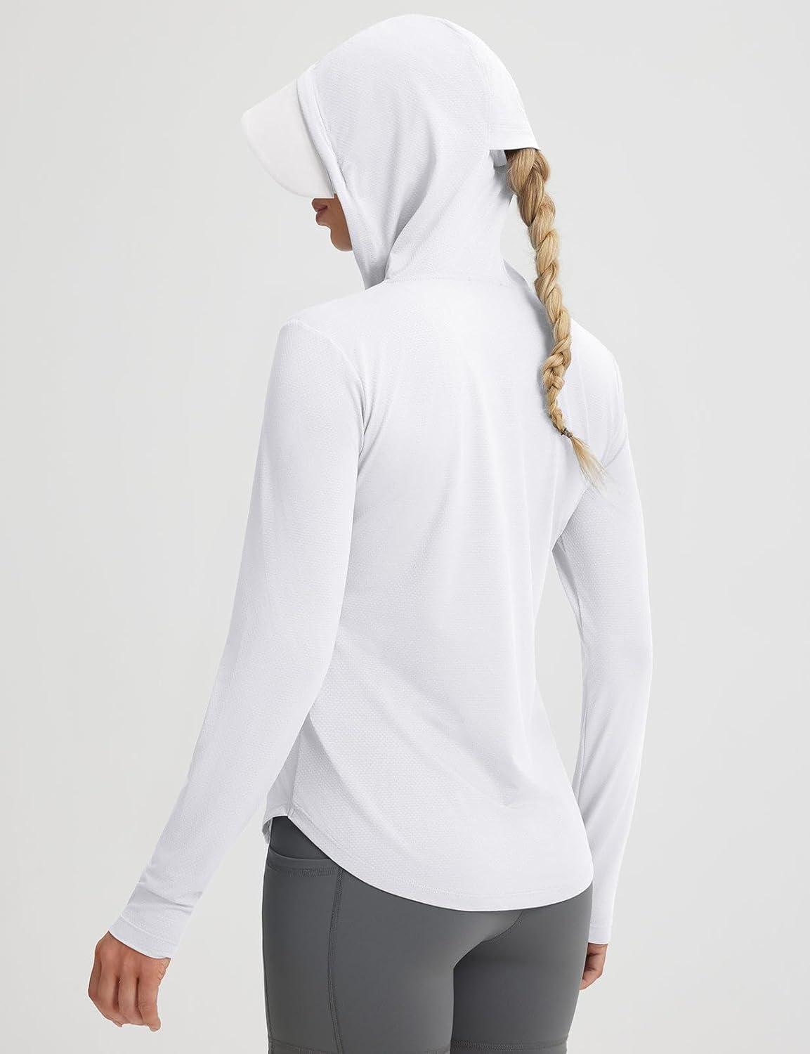 baleaf Women's Sun Jacket with Removable Brim UPF 50+ Lightweight UV SPF Shirts Long Sleeve Full Zip Up Hoodie Outdoor Hiking(White)