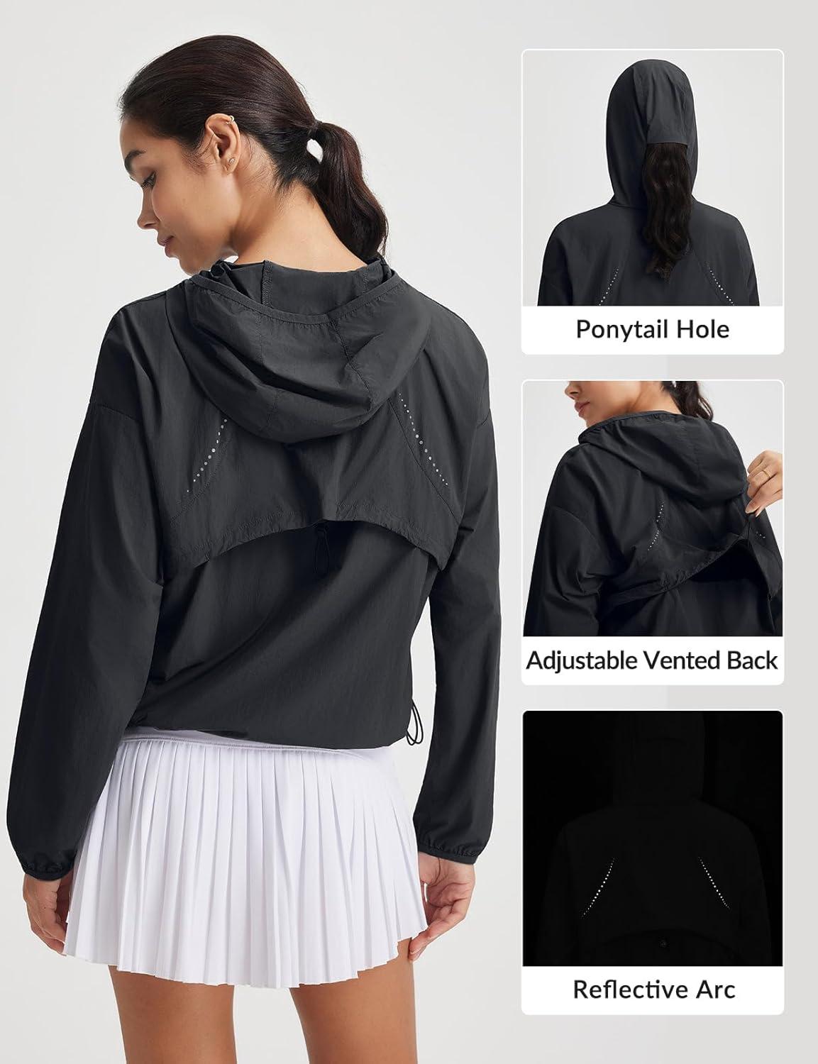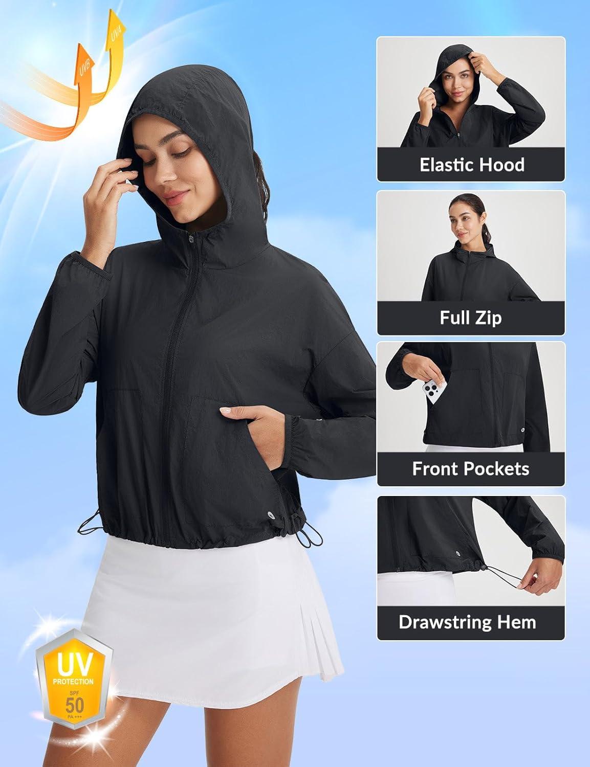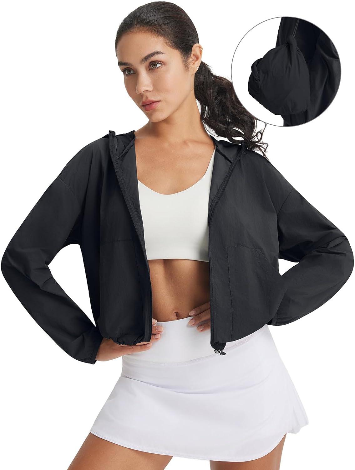 imagebaleaf Womens Sun Jackets Lightweight Packable Long Sleeve Hoodie Zip Up UPF 50 Crop Shirts Water Resistant Tops WorkoutBlack