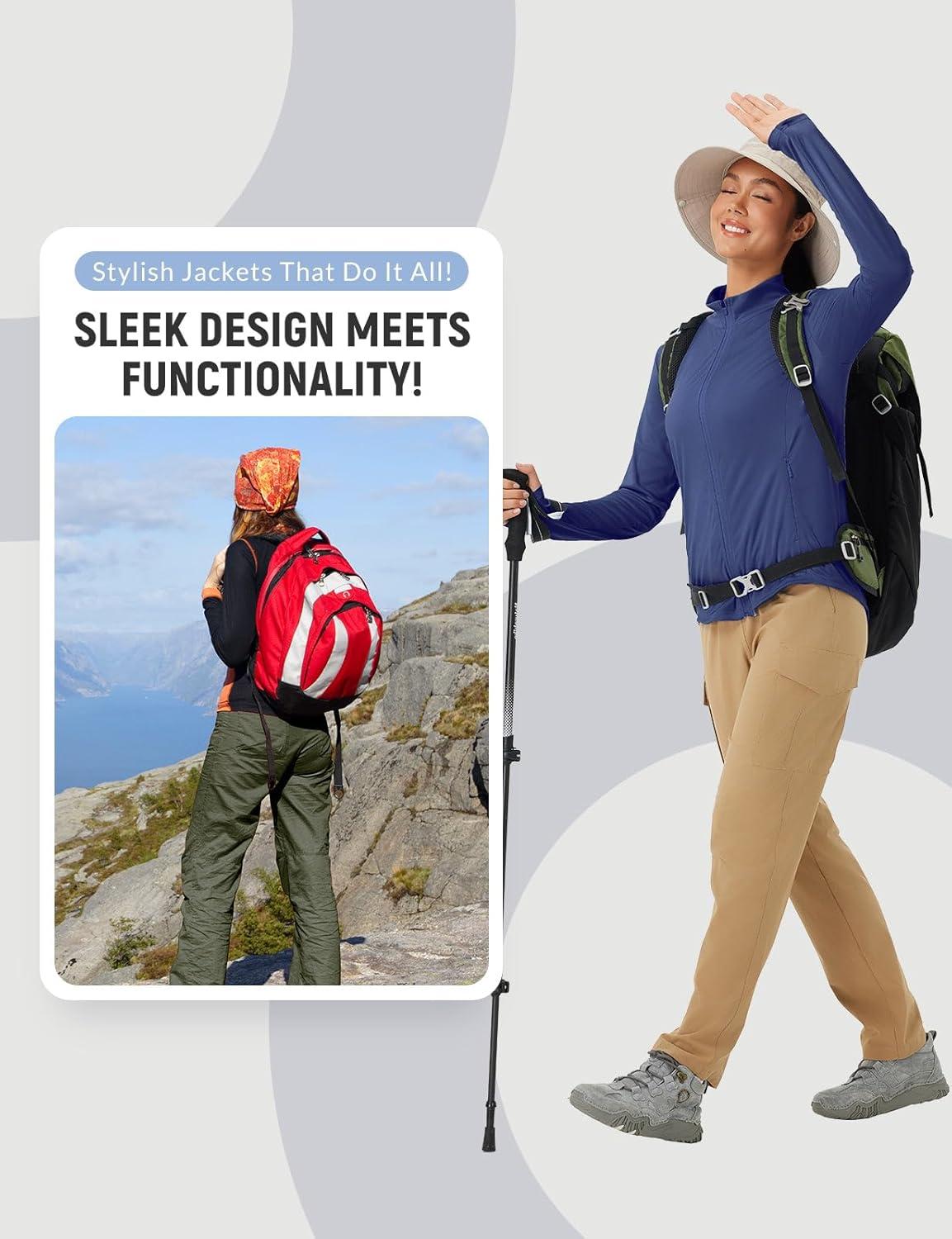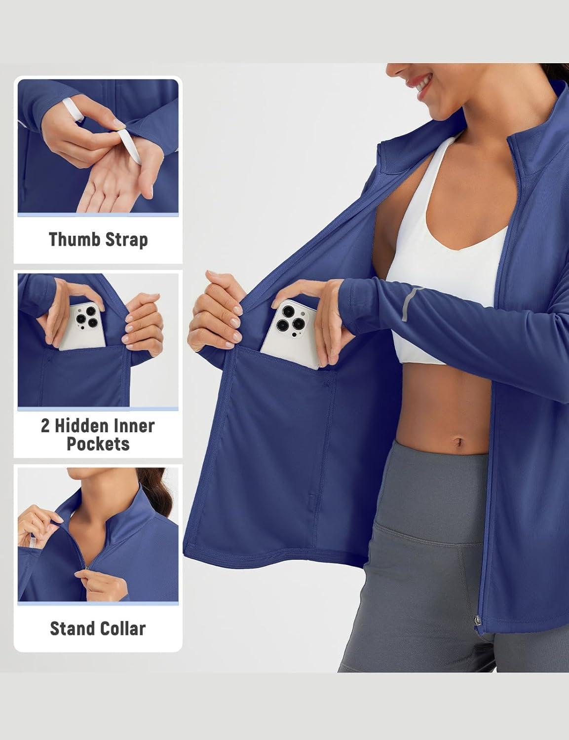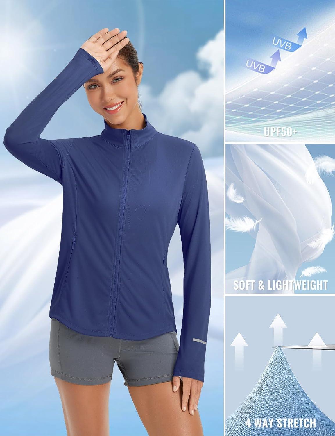 imagebaleaf Womens Sun Shirts UPF 50 Lightweight Running Jacket UV Protection Athletic Full Zip Long Sleeve PocketsNavy Blue